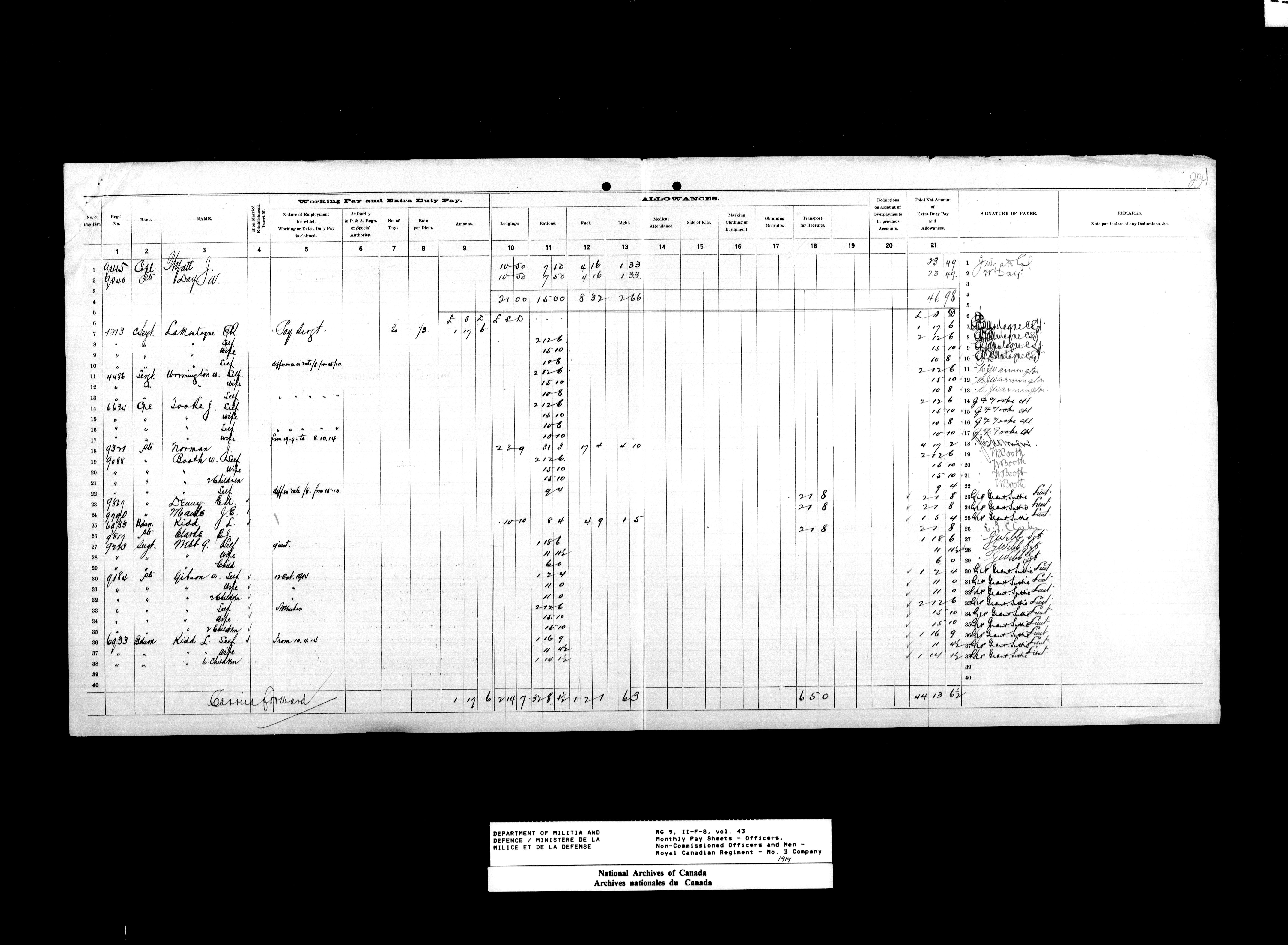 Nominal rolls and paylists for the Permanent Force (1871-1915) - 17453
