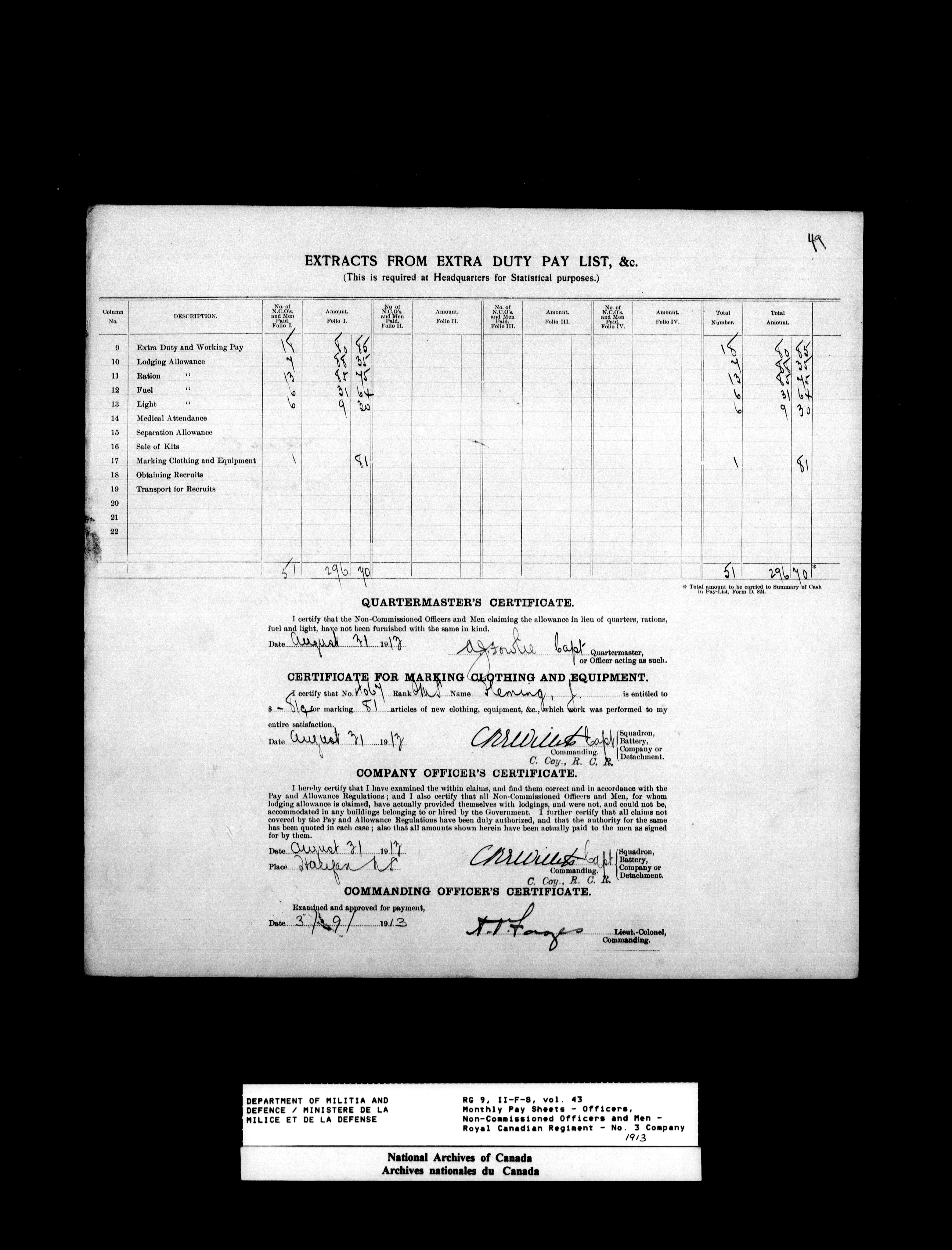 Nominal rolls and paylists for the Permanent Force (1871-1915) - 17453
