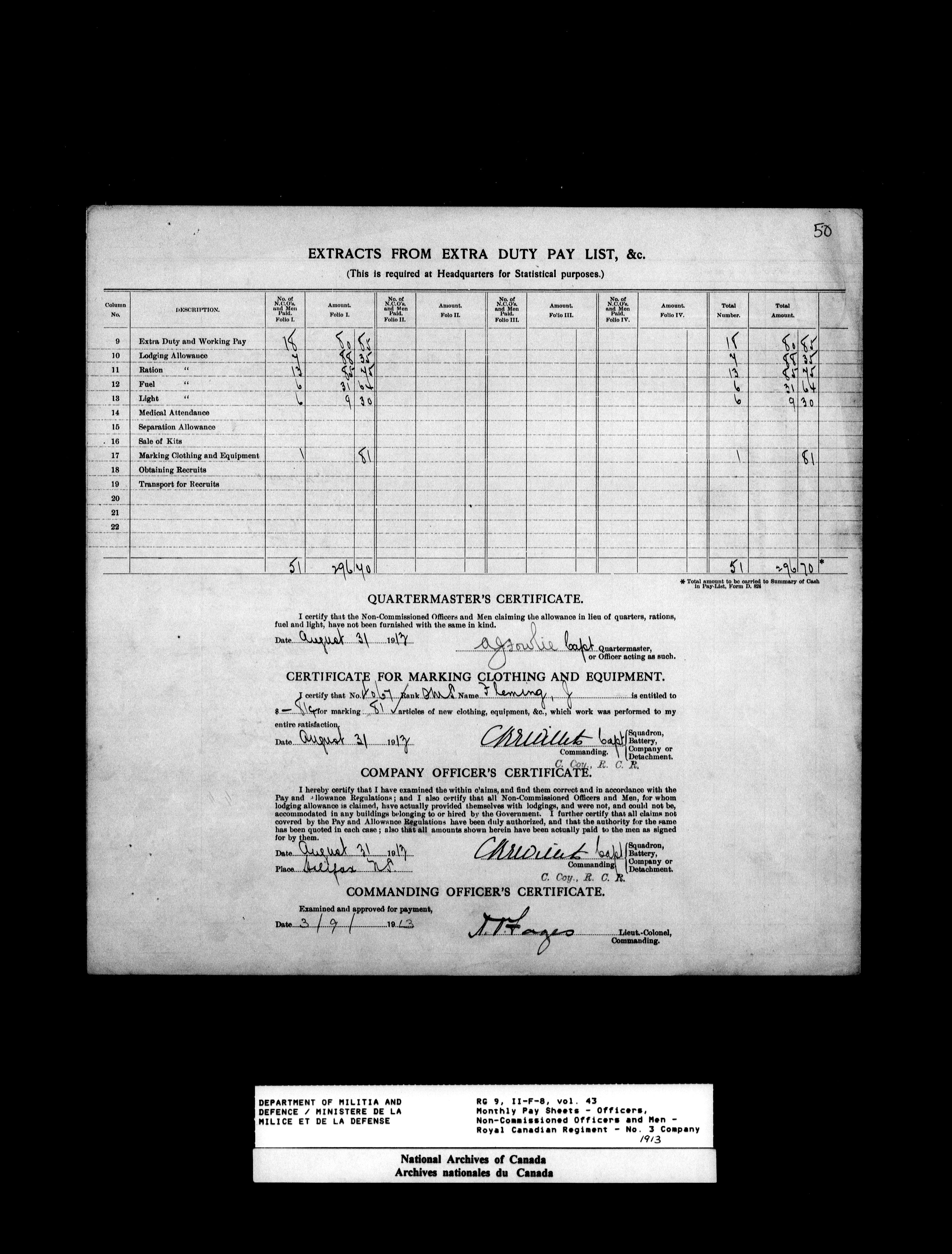 Nominal rolls and paylists for the Permanent Force (1871-1915) - 17453