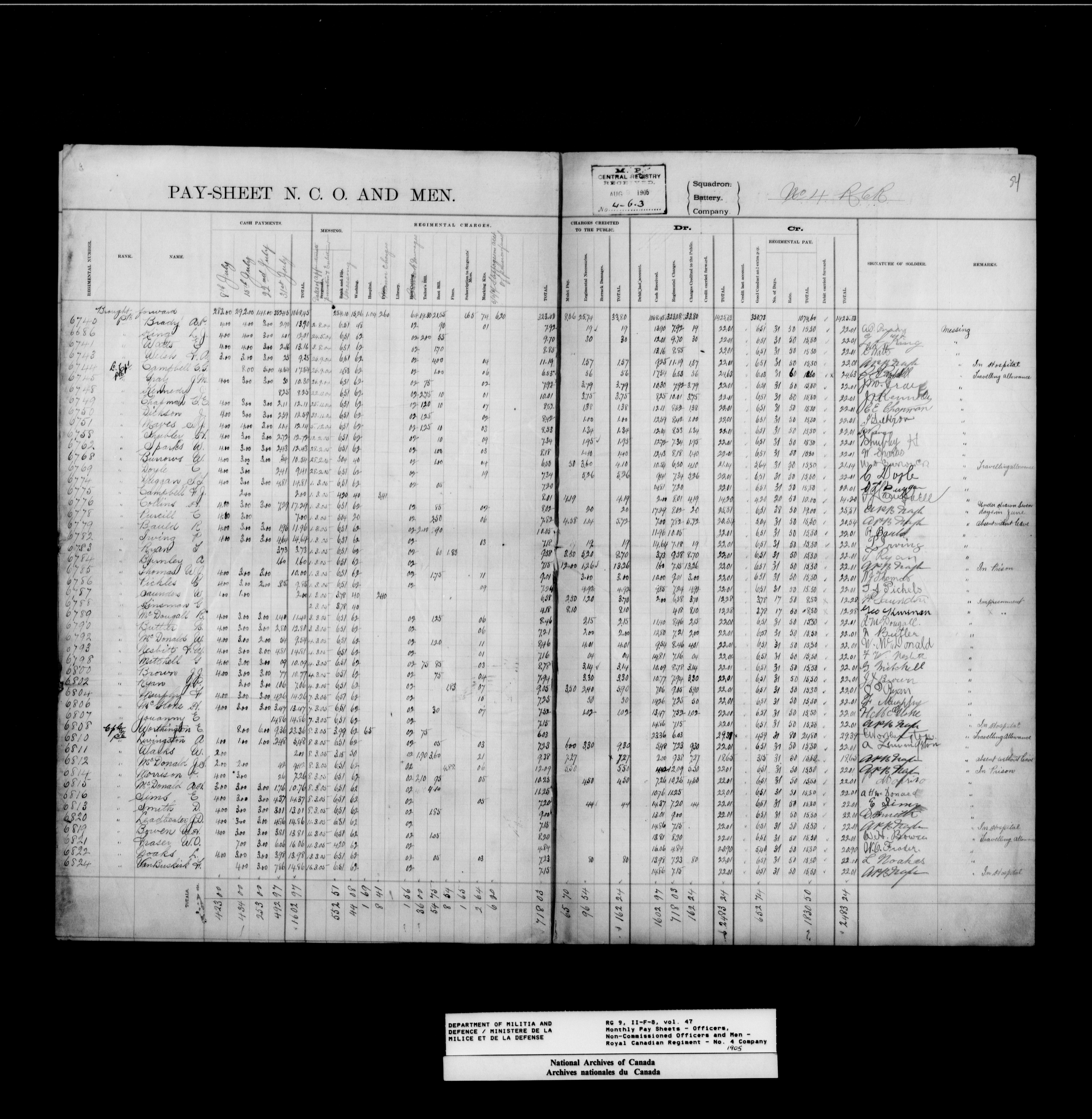 Nominal rolls and paylists for the Permanent Force (1871-1915) - 17455