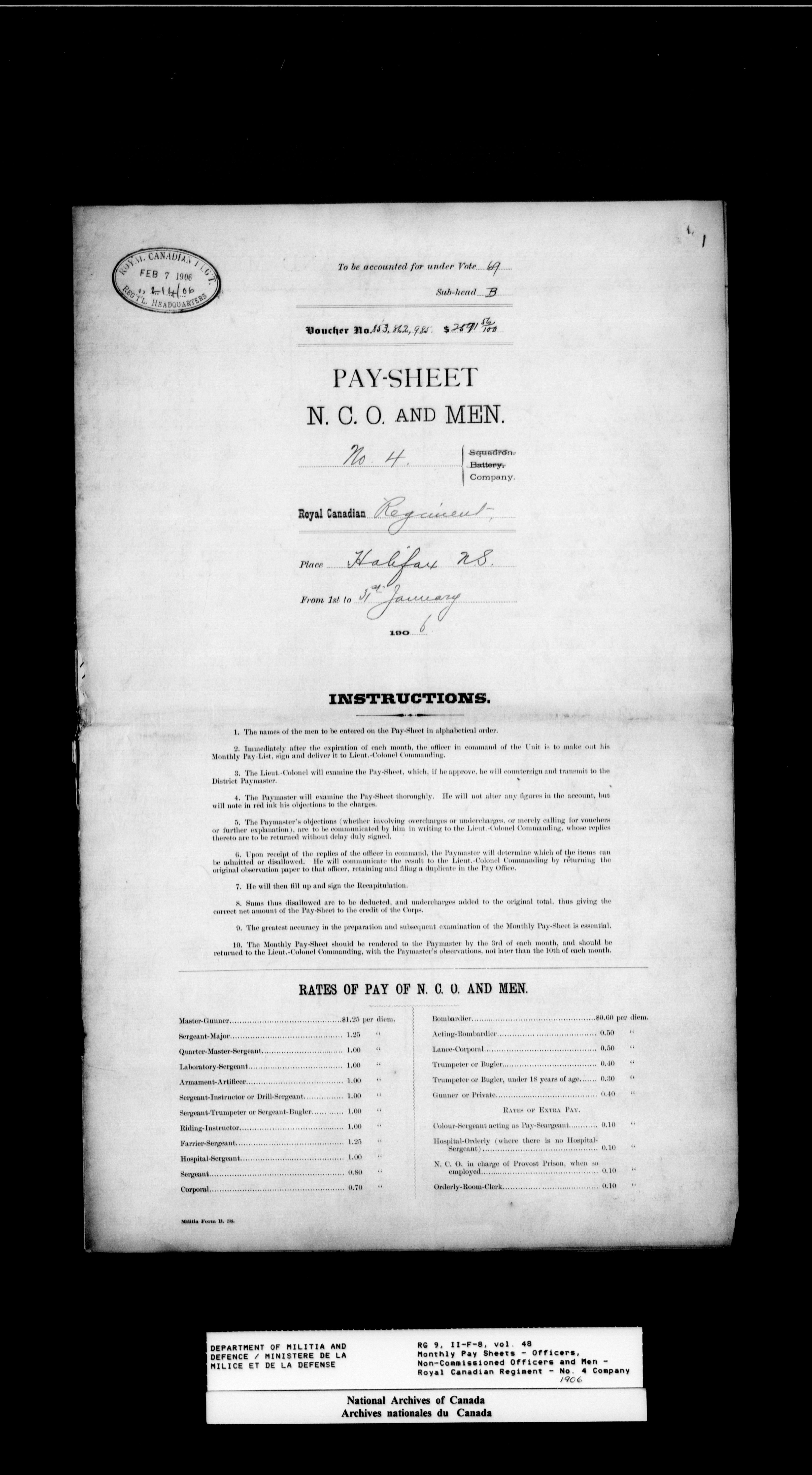 Nominal rolls and paylists for the Permanent Force (1871-1915) - 17455