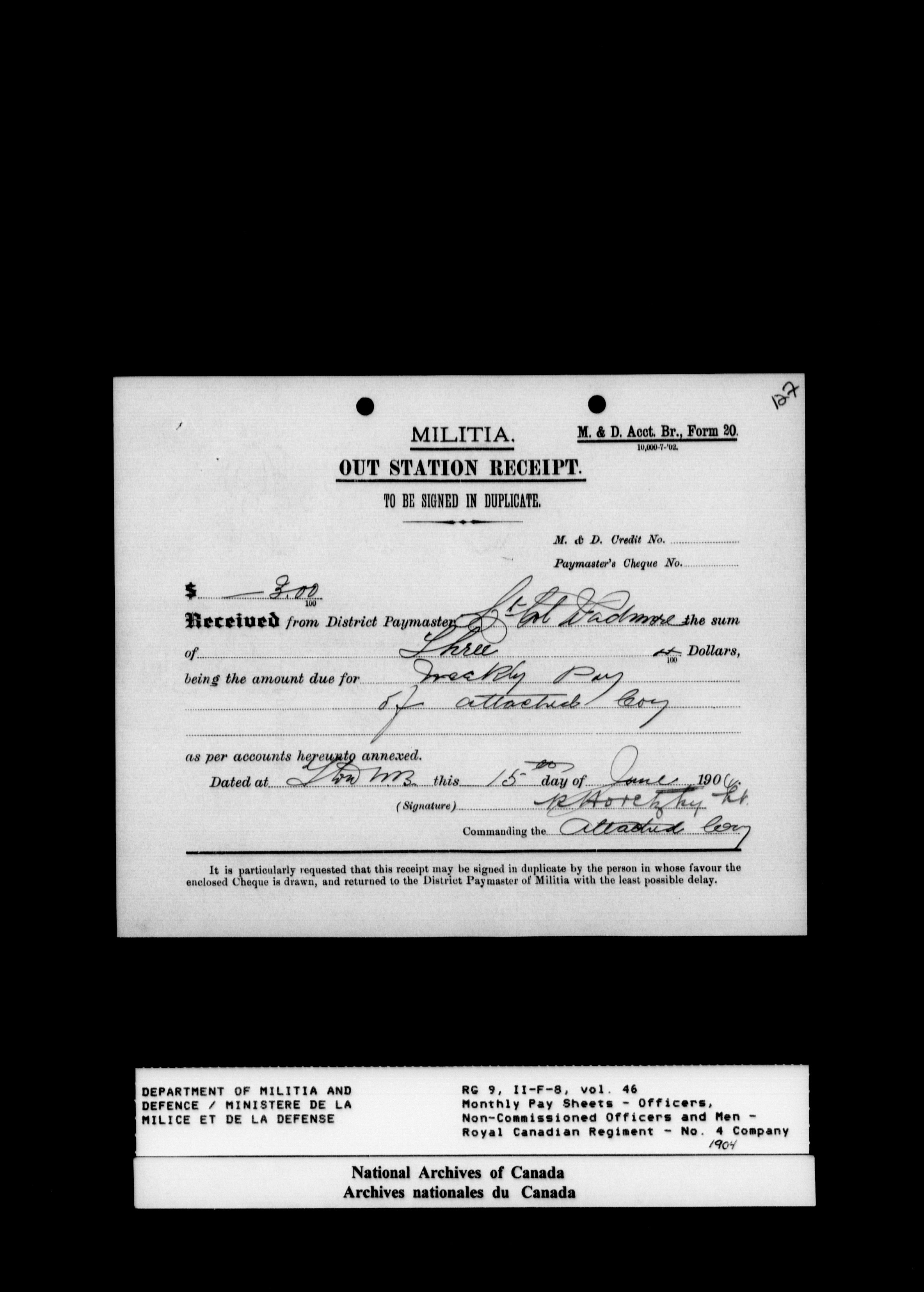 Nominal rolls and paylists for the Permanent Force (1871-1915) - 17455