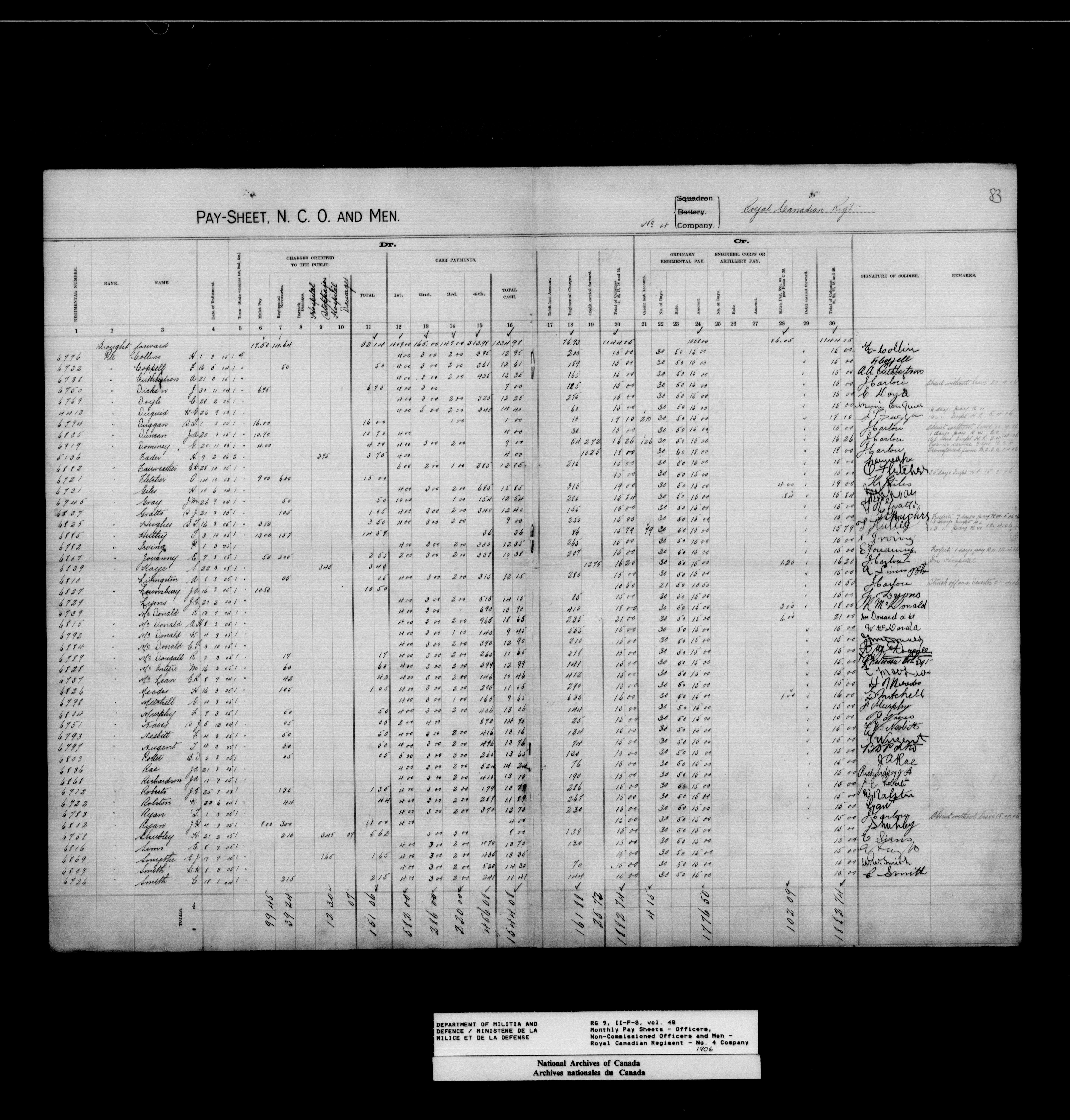 Nominal rolls and paylists for the Permanent Force (1871-1915) - 17456