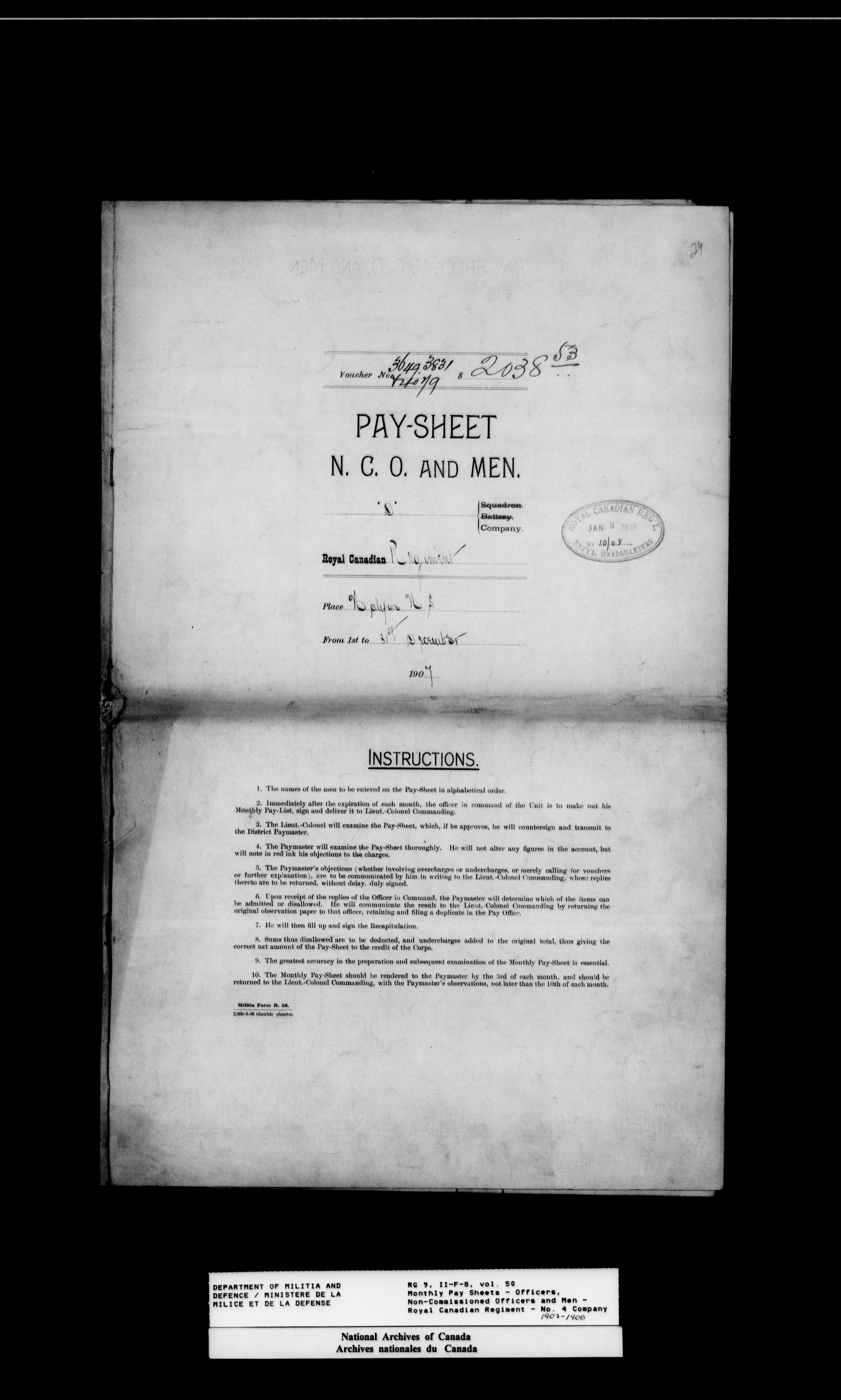 Nominal rolls and paylists for the Permanent Force (1871-1915) - 17456