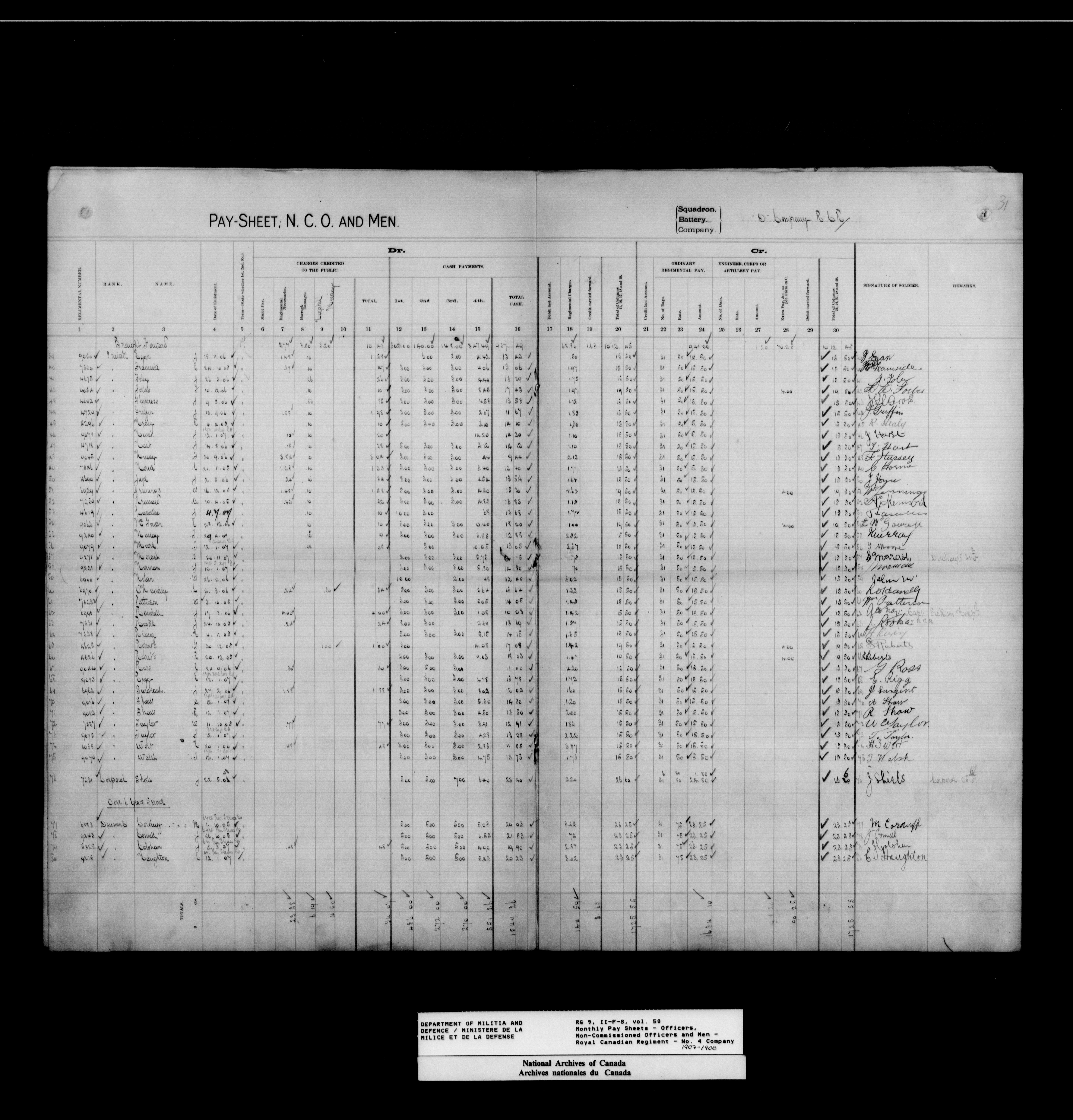 Nominal rolls and paylists for the Permanent Force (1871-1915) - 17456