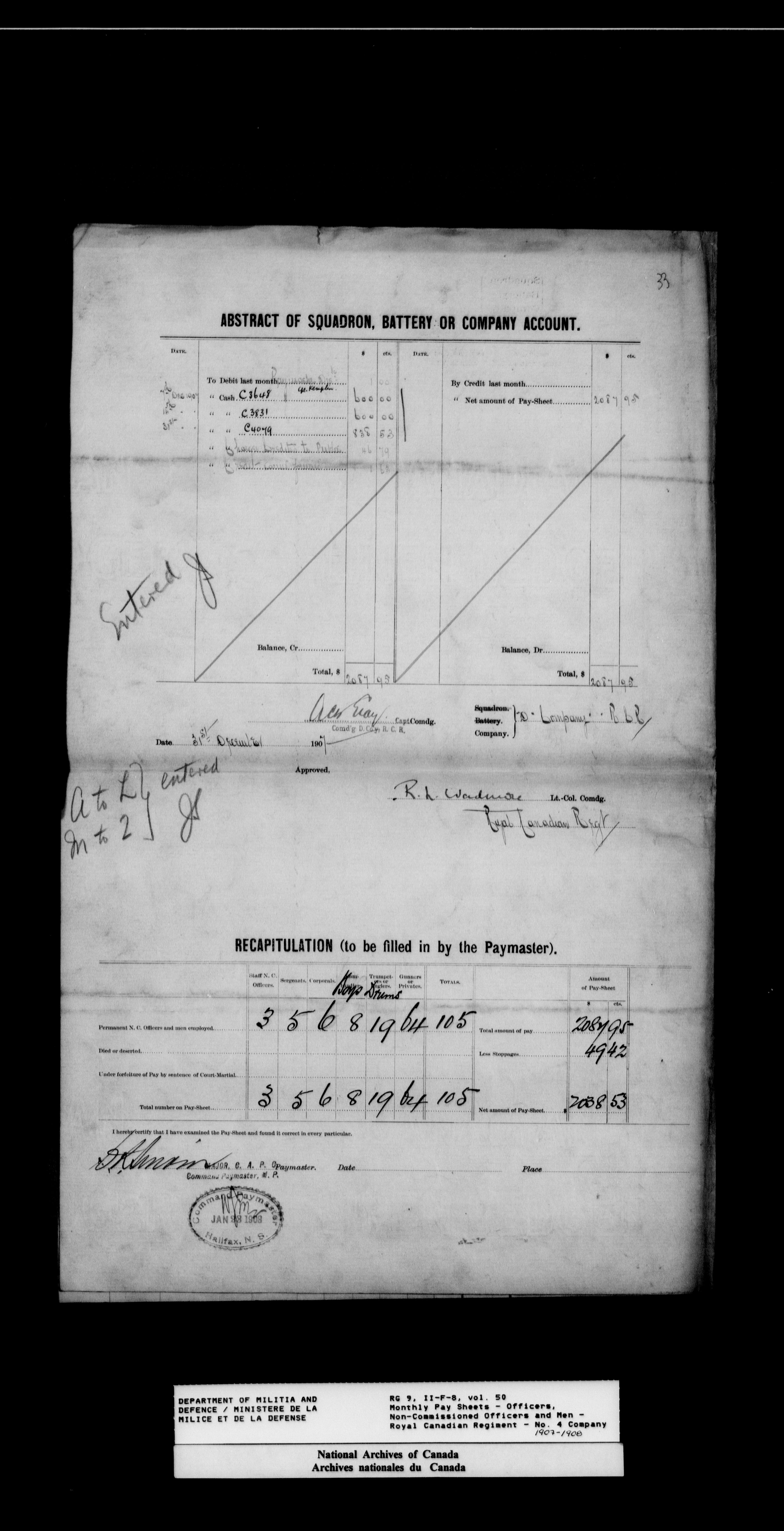 Nominal rolls and paylists for the Permanent Force (1871-1915) - 17456