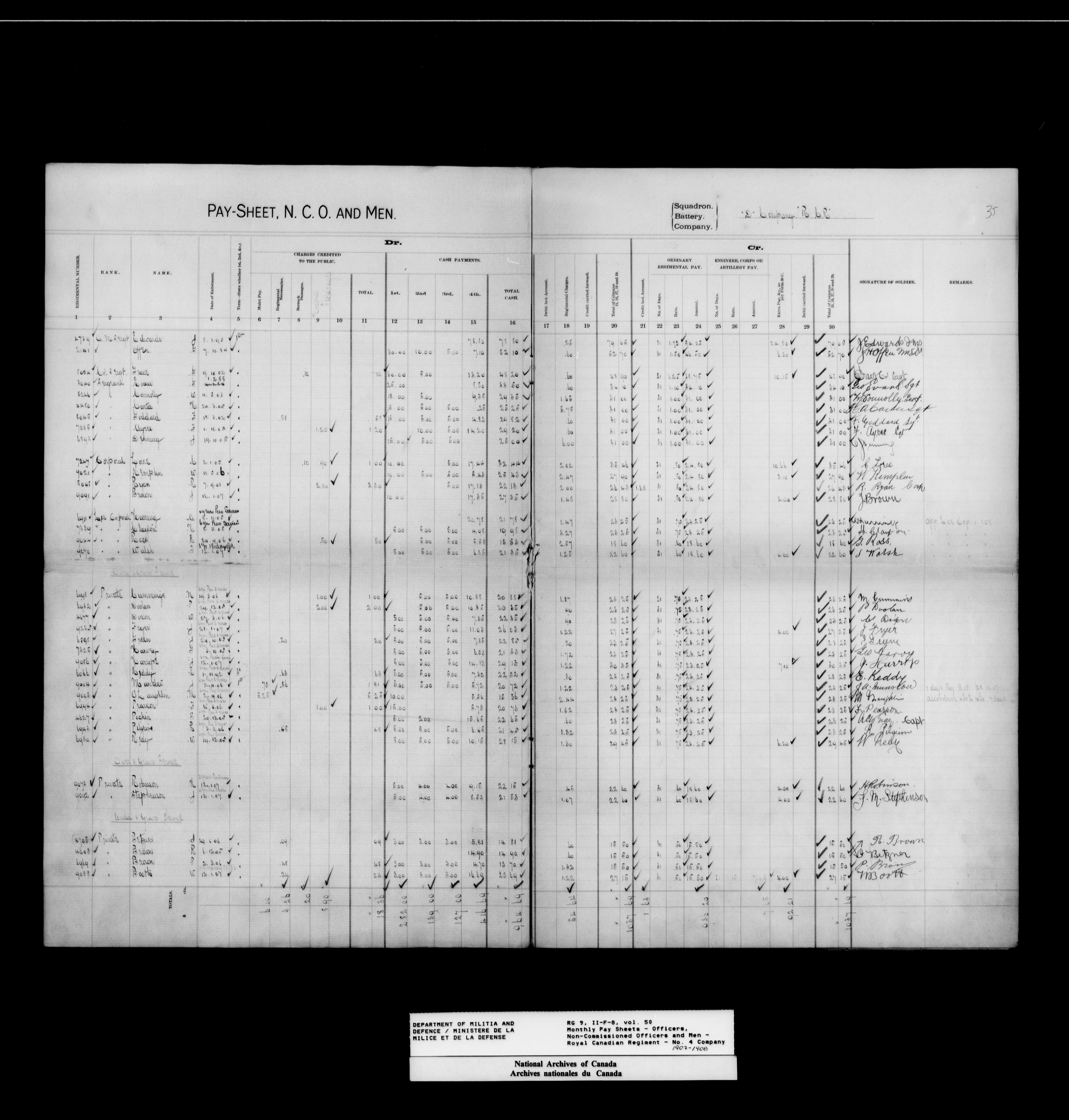 Nominal rolls and paylists for the Permanent Force (1871-1915) - 17456