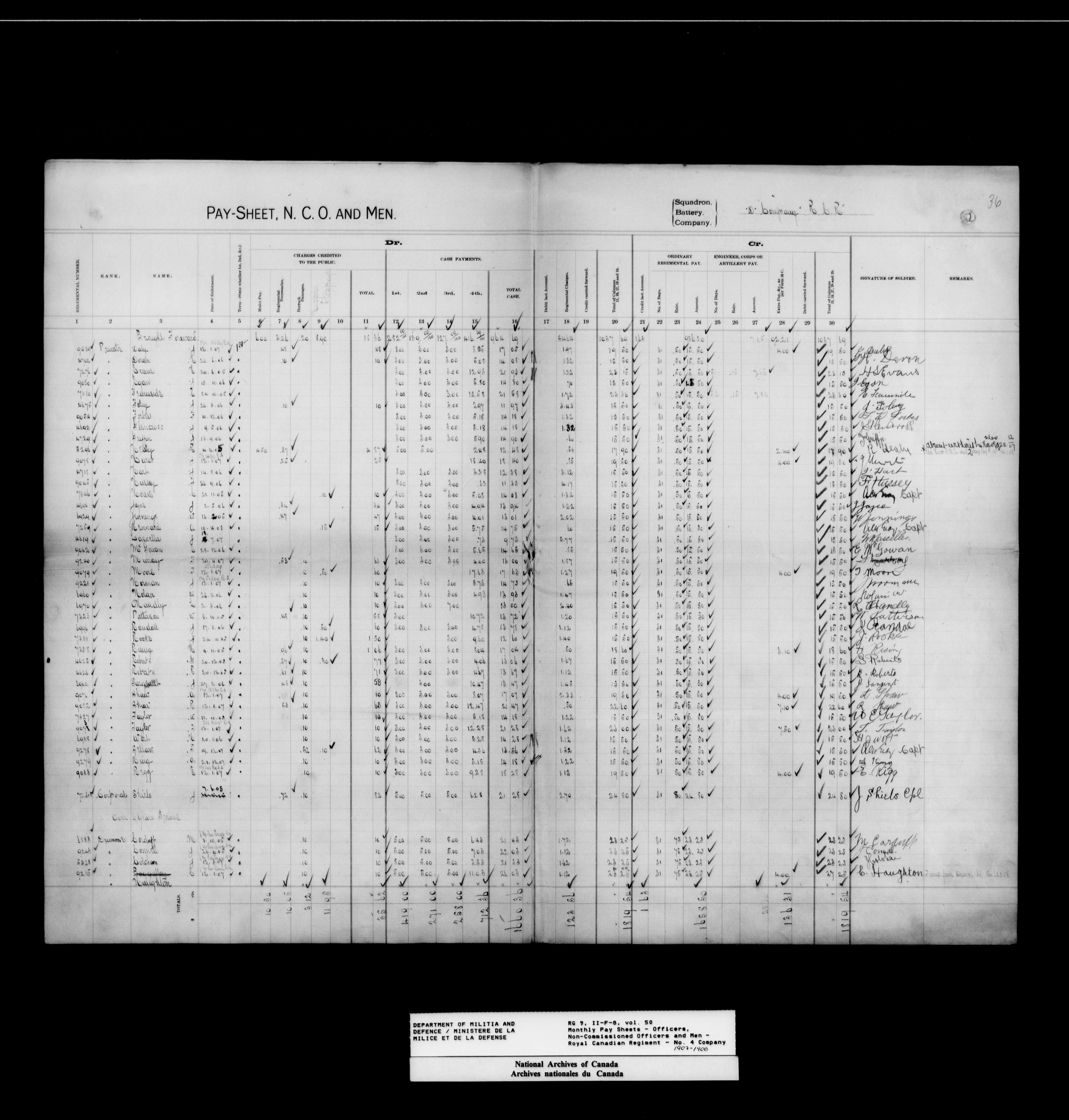 Nominal rolls and paylists for the Permanent Force (1871-1915) - 17456
