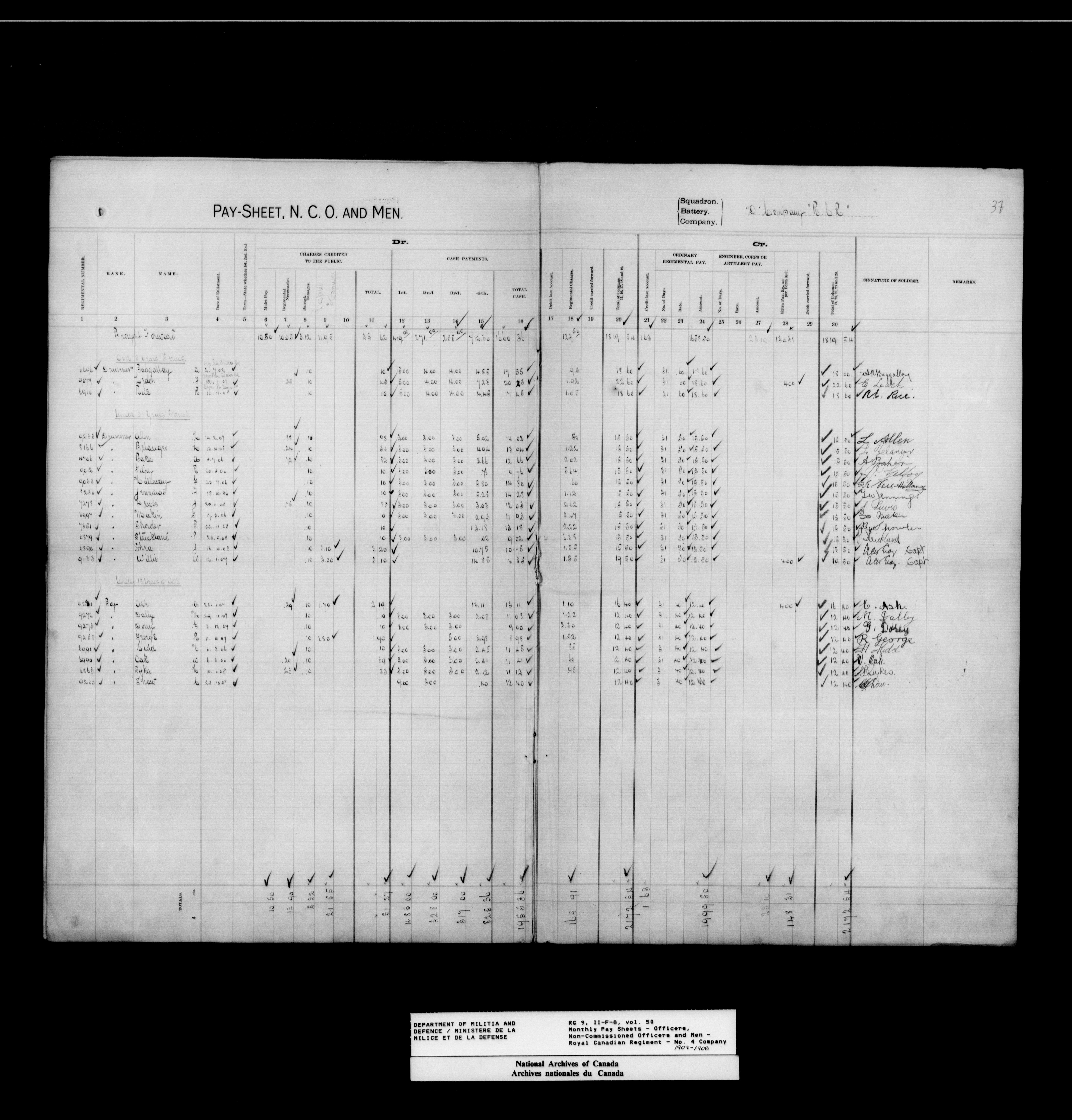 Nominal rolls and paylists for the Permanent Force (1871-1915) - 17456