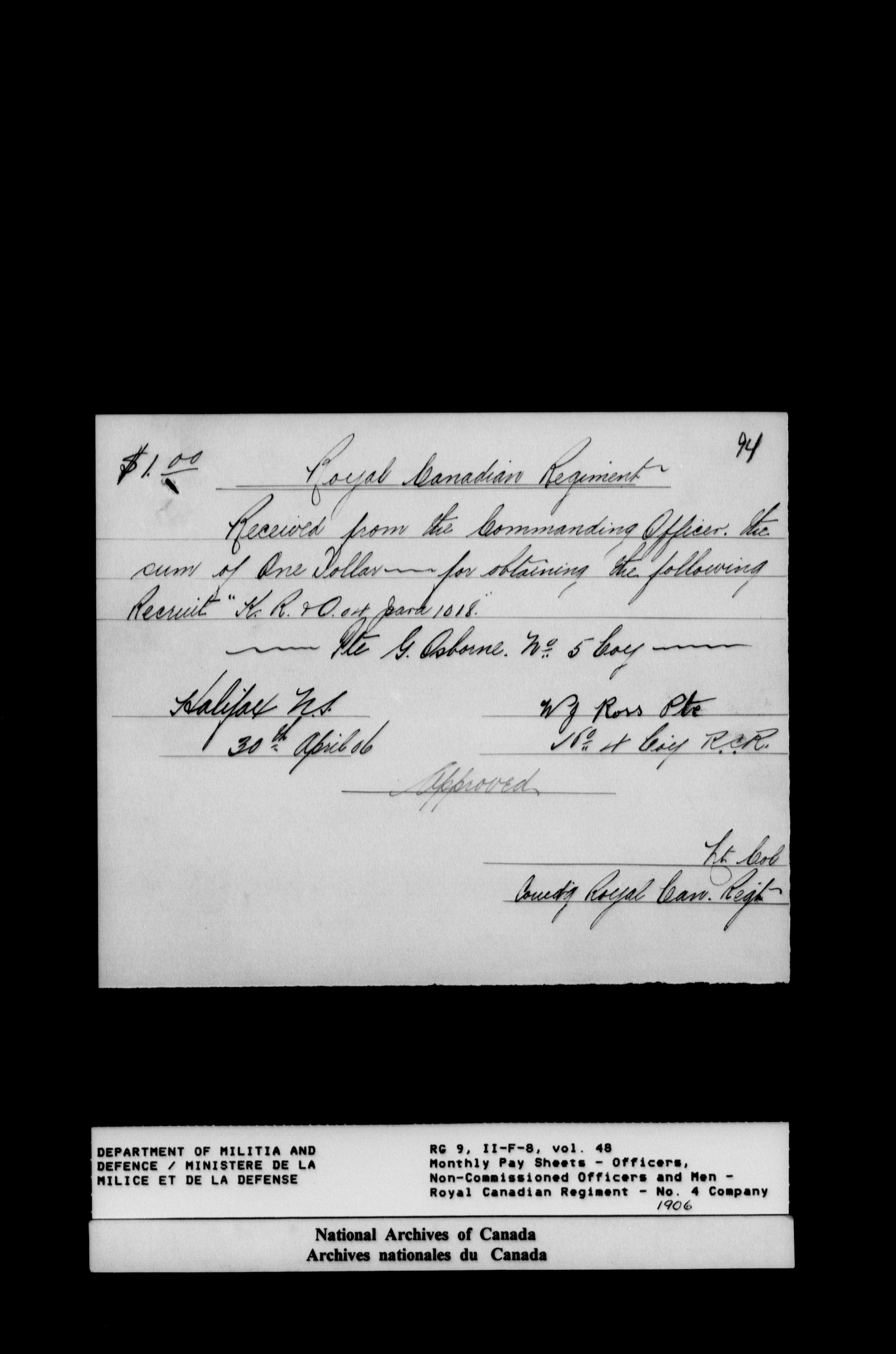 Nominal rolls and paylists for the Permanent Force (1871-1915) - 17456