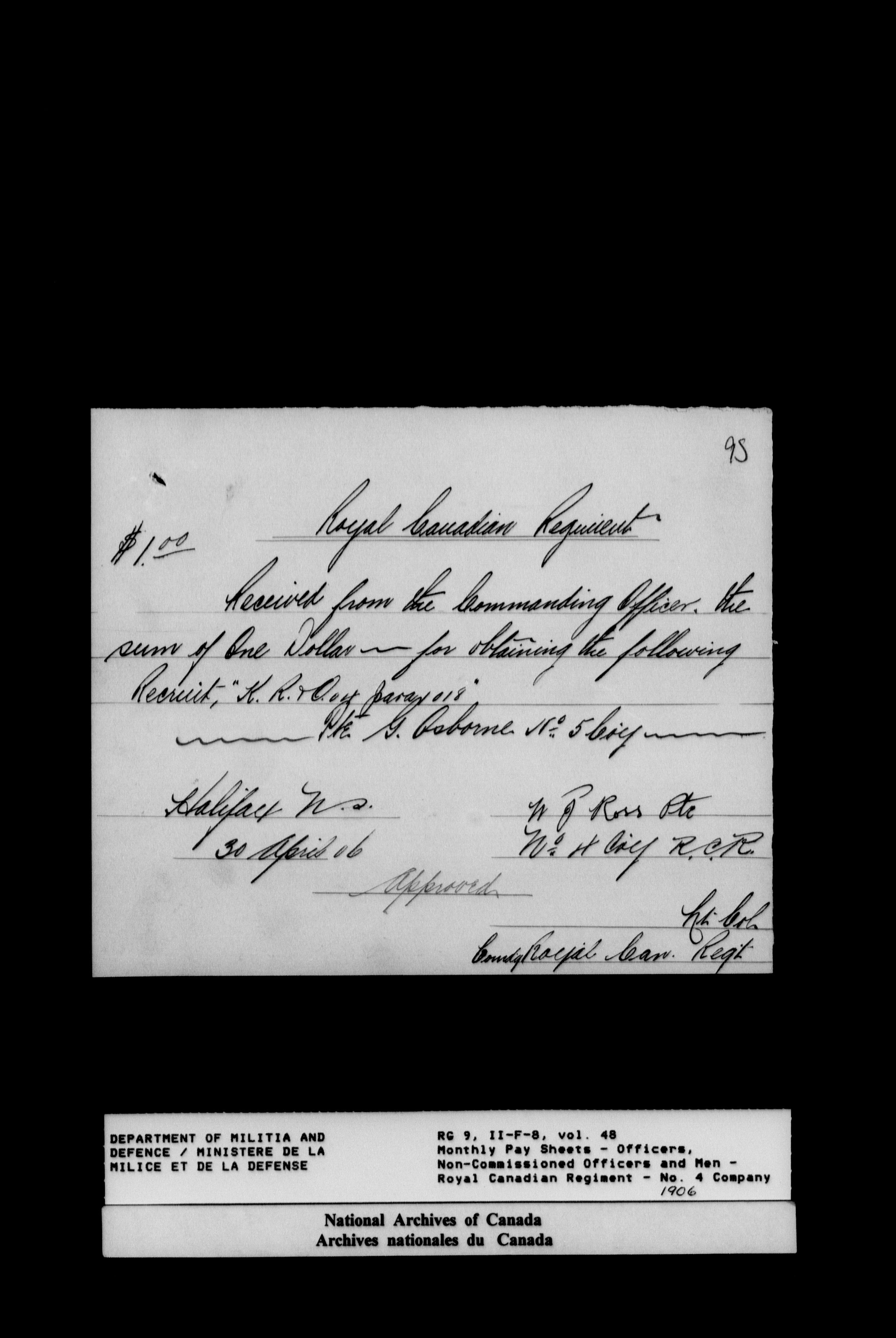 Nominal rolls and paylists for the Permanent Force (1871-1915) - 17456