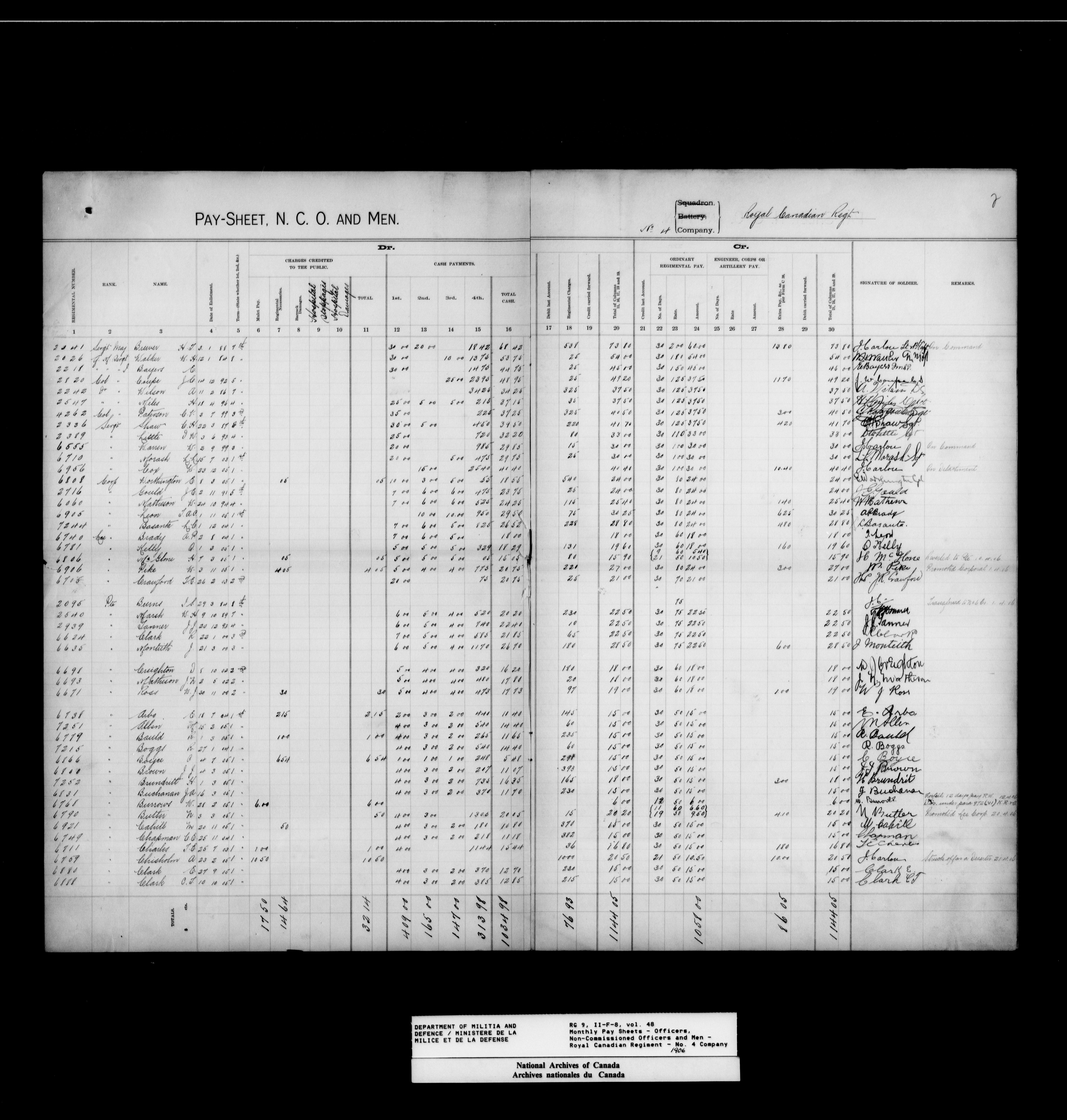 Nominal rolls and paylists for the Permanent Force (1871-1915) - 17456