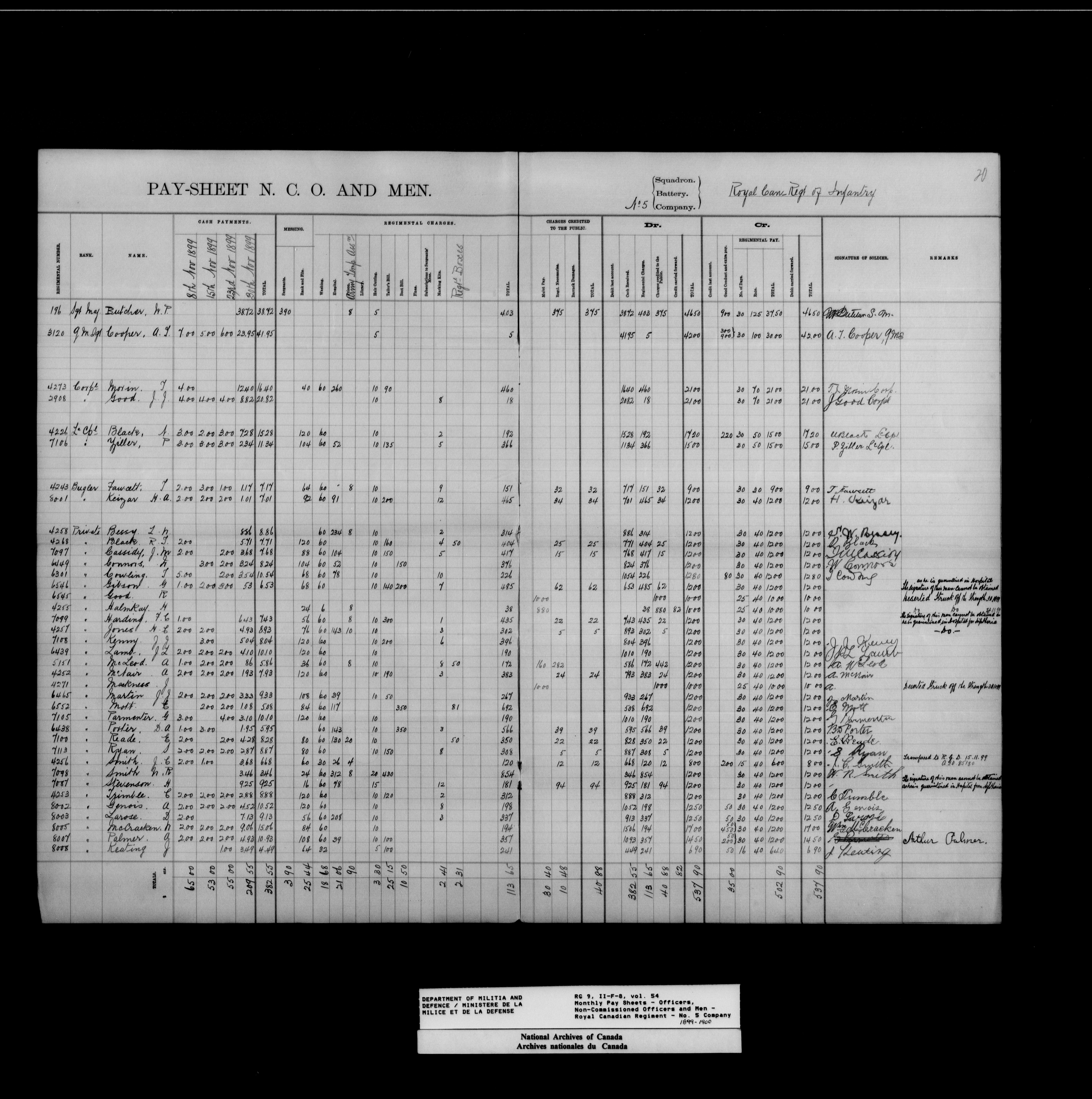 Nominal rolls and paylists for the Permanent Force (1871-1915) - 17460