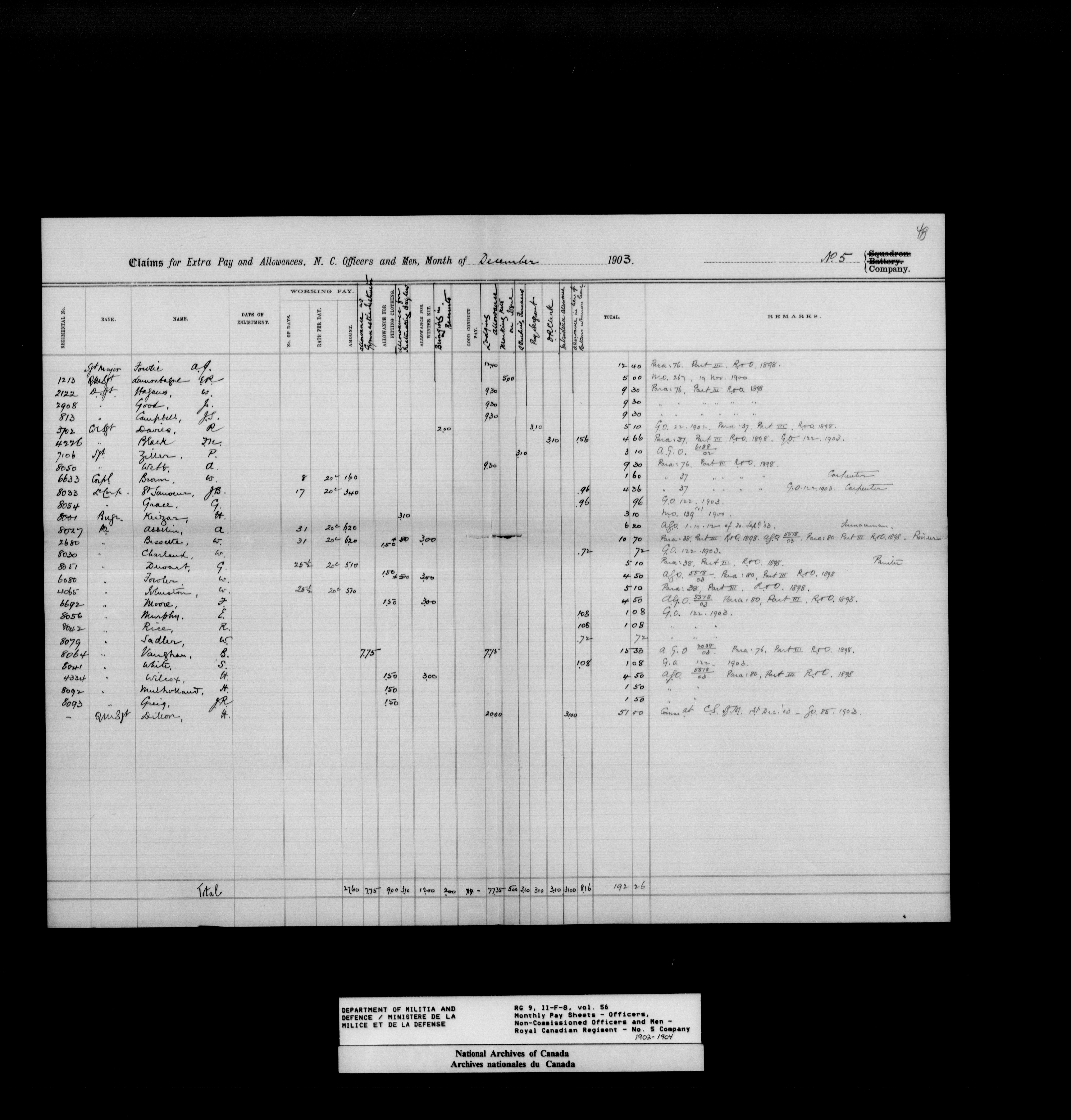 Nominal rolls and paylists for the Permanent Force (1871-1915) - 17461