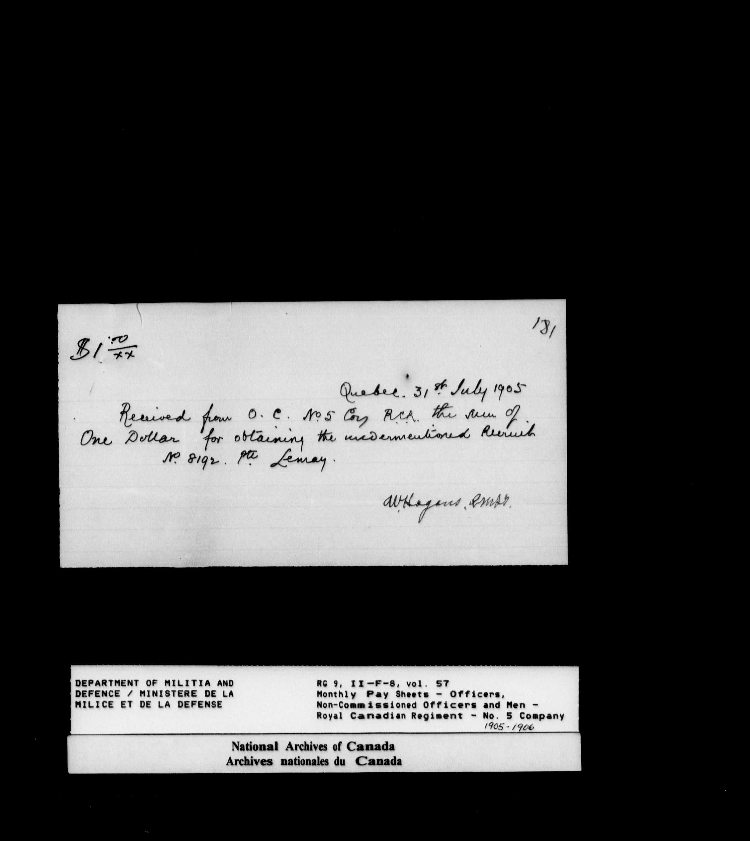 Nominal rolls and paylists for the Permanent Force (1871-1915) - 17461