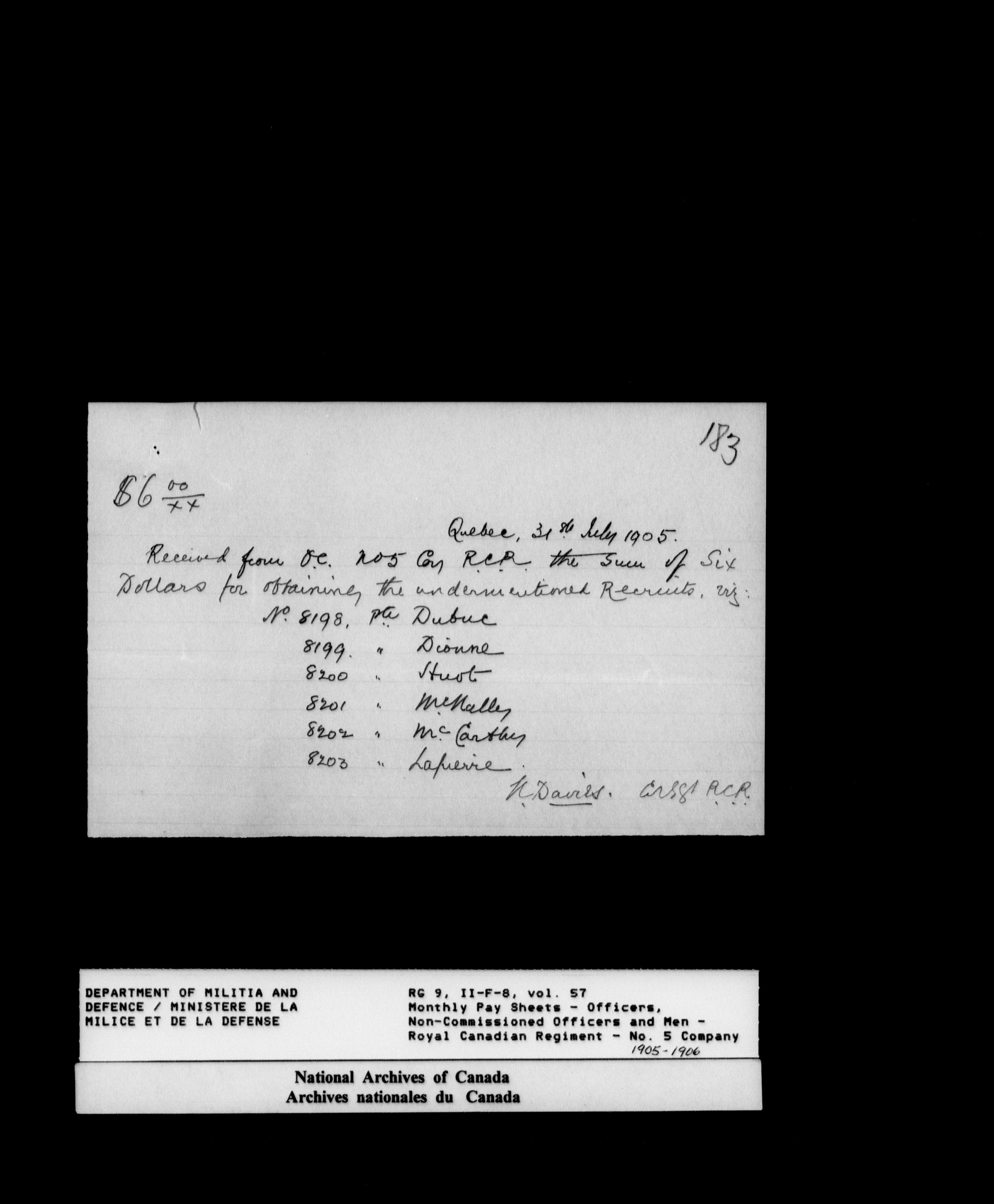 Nominal rolls and paylists for the Permanent Force (1871-1915) - 17461
