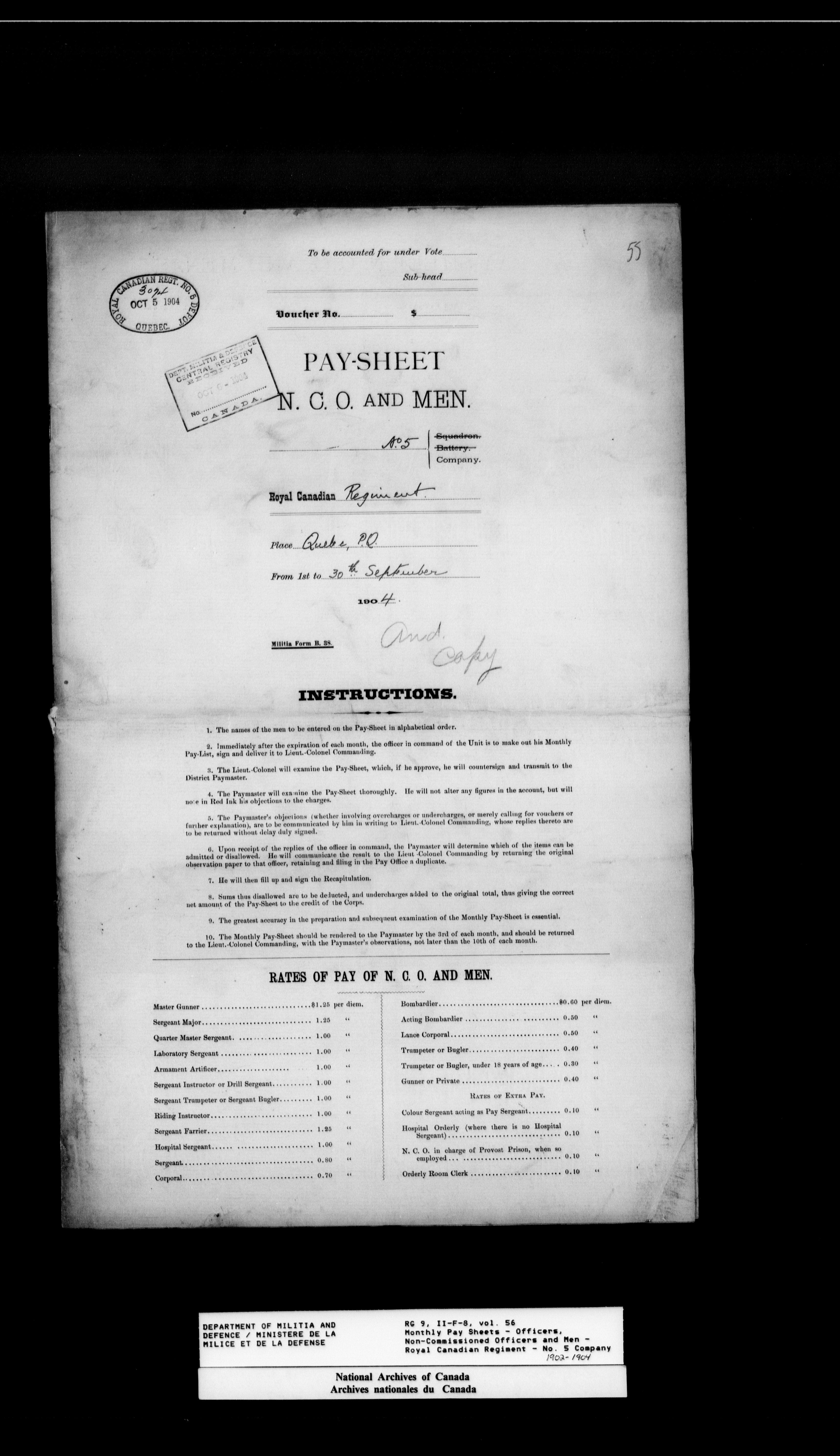 Nominal rolls and paylists for the Permanent Force (1871-1915) - 17461