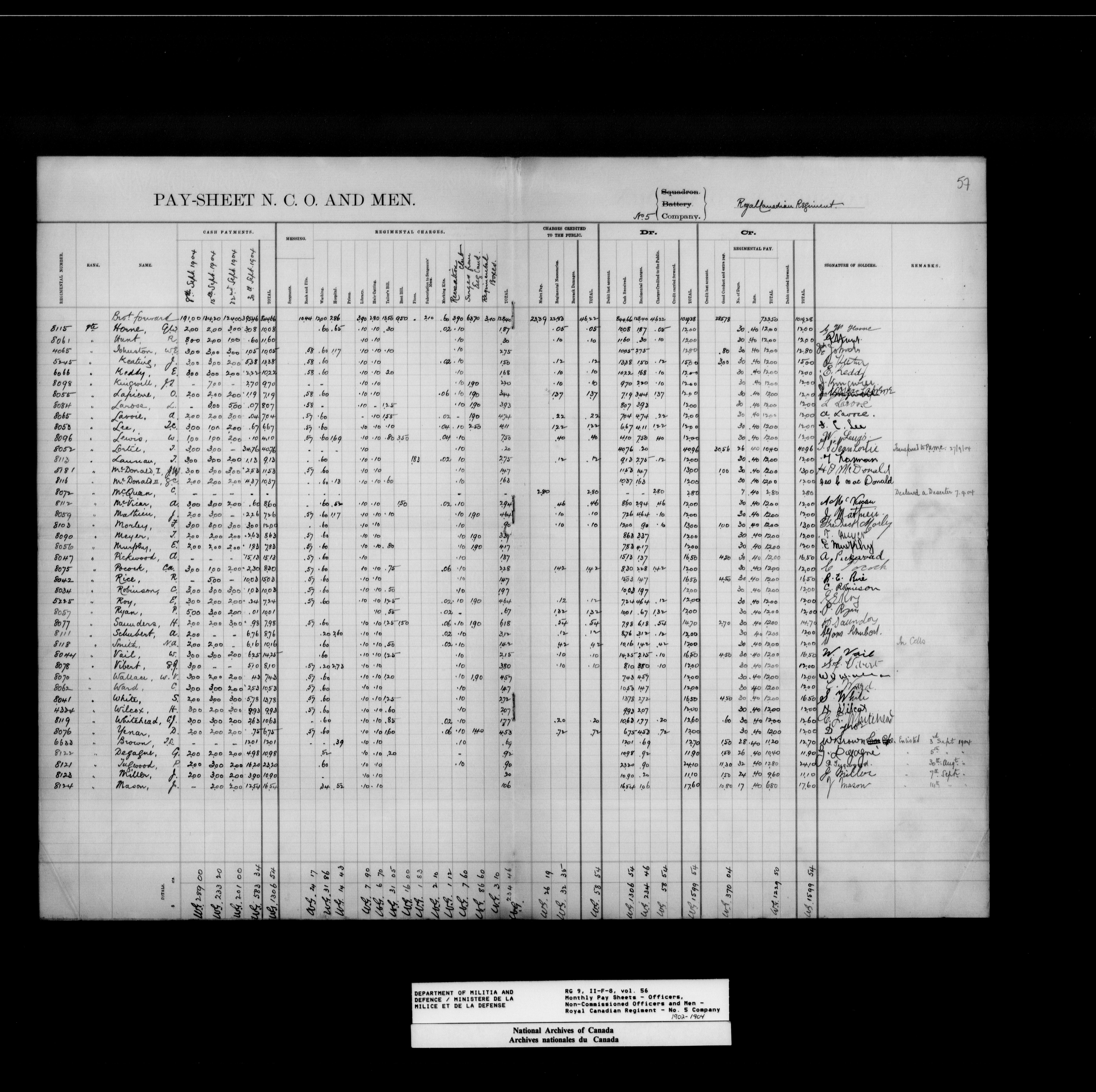 Nominal rolls and paylists for the Permanent Force (1871-1915) - 17461