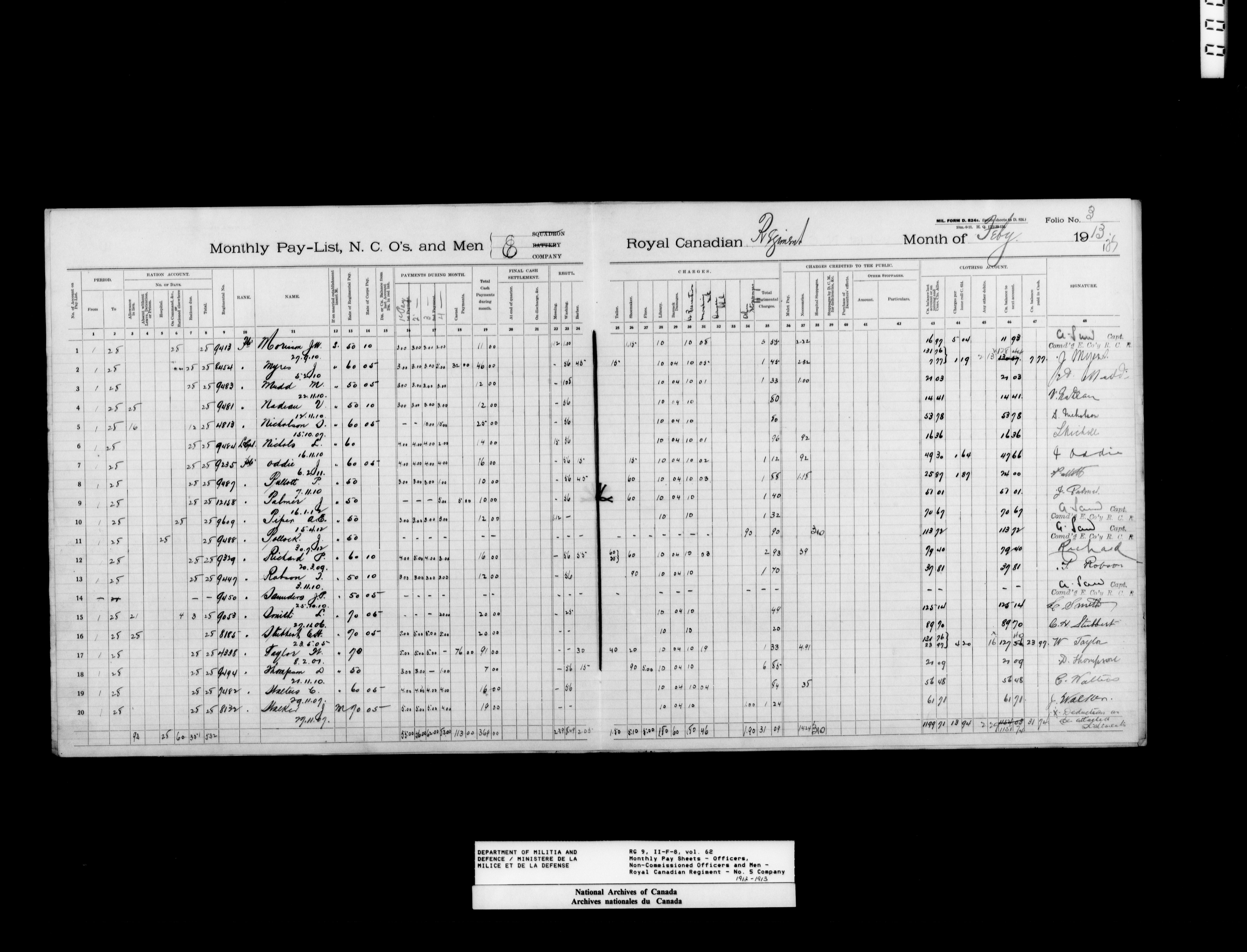 Nominal rolls and paylists for the Permanent Force (1871-1915) - 17465