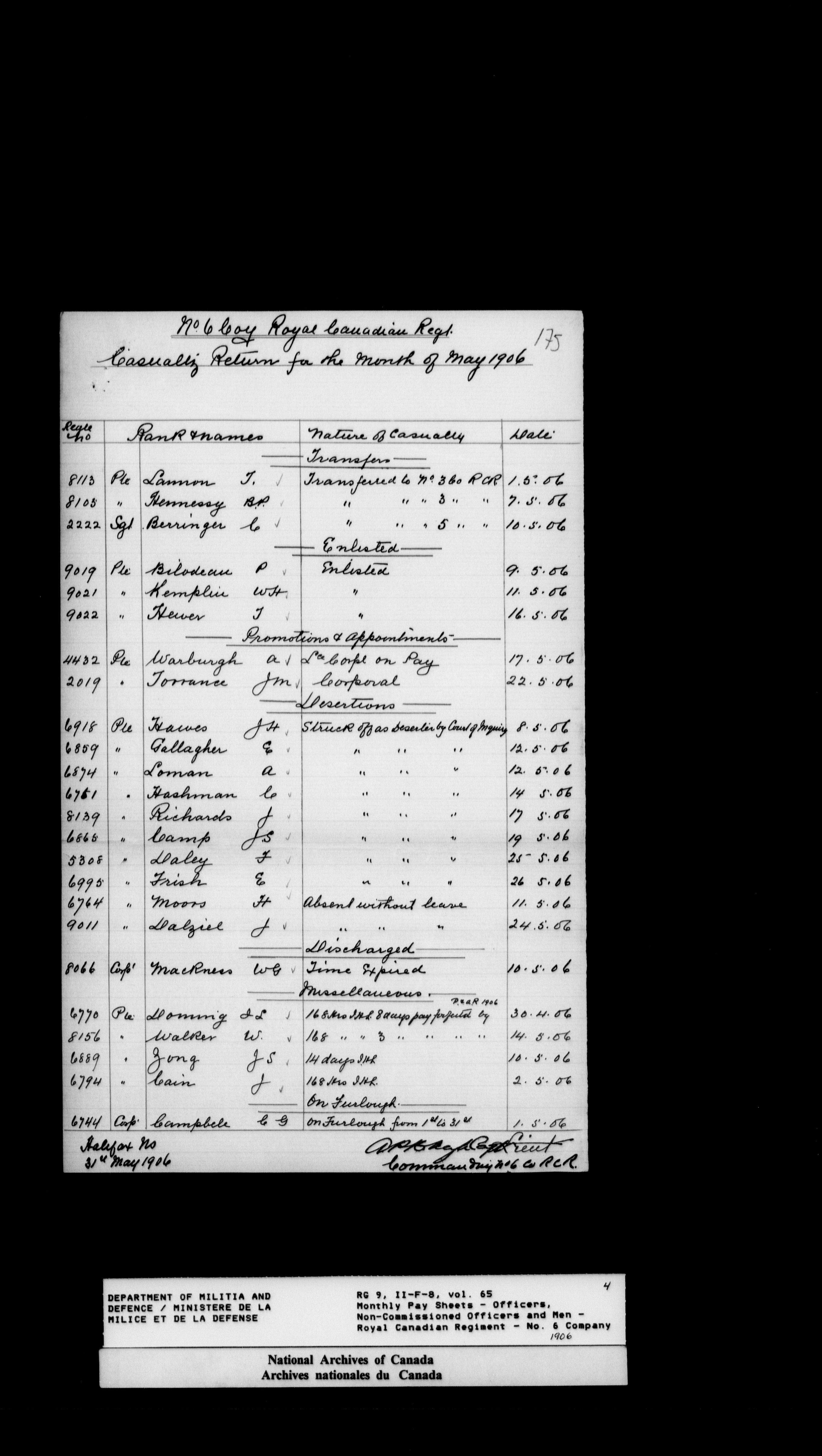 Nominal rolls and paylists for the Permanent Force (1871-1915) - 17466
