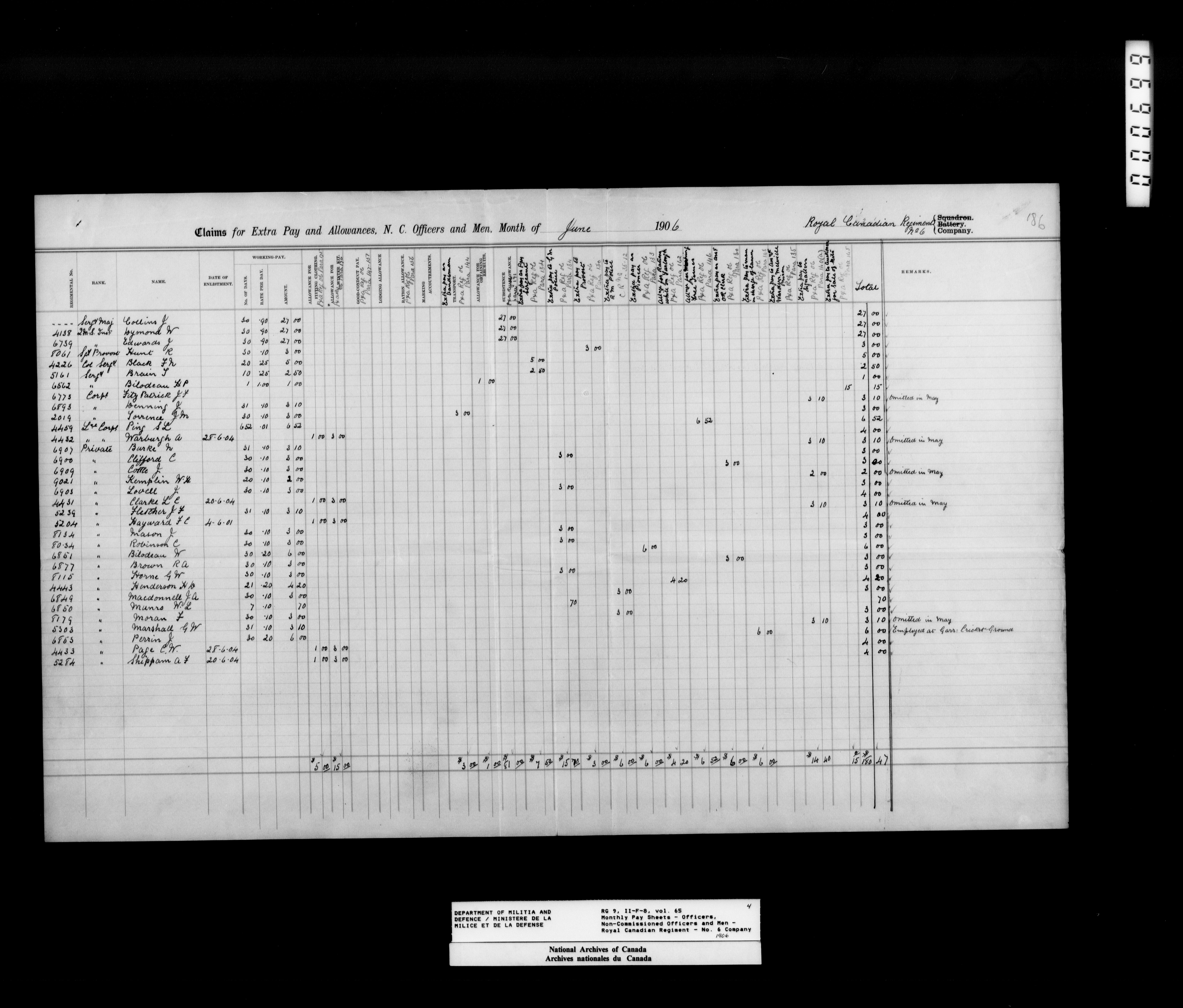 Nominal rolls and paylists for the Permanent Force (1871-1915) - 17466
