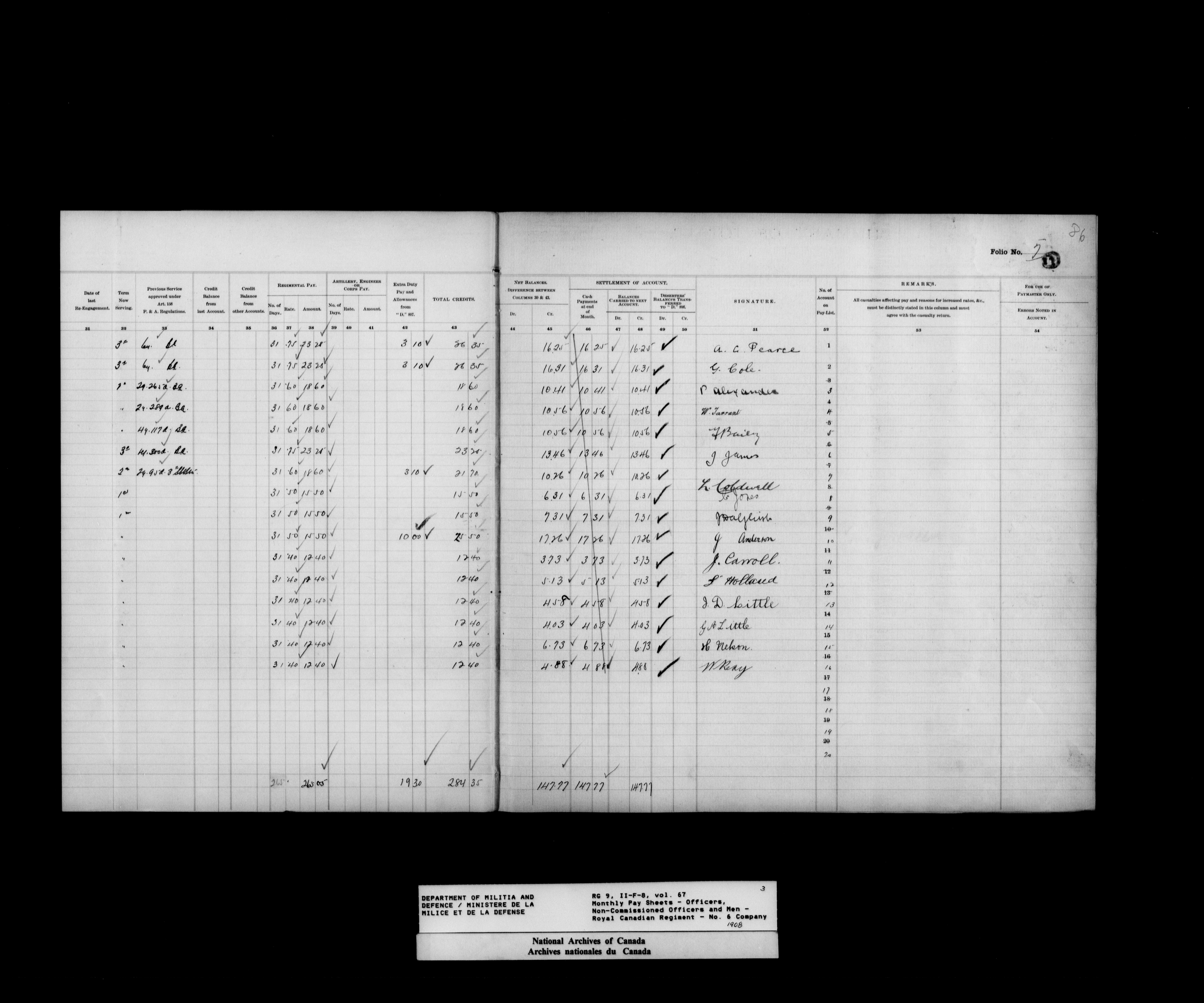Nominal rolls and paylists for the Permanent Force (1871-1915) - 17467