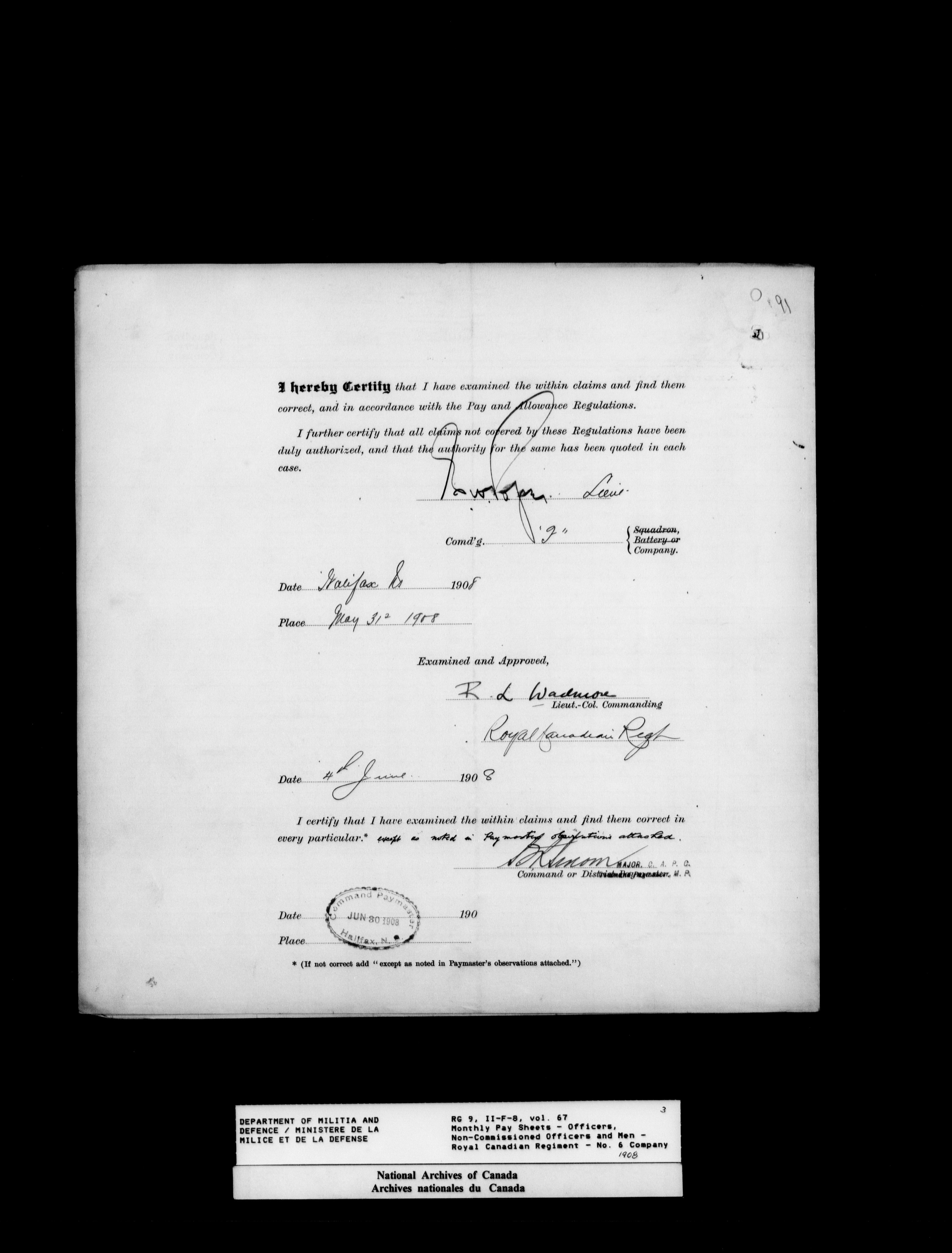 Nominal rolls and paylists for the Permanent Force (1871-1915) - 17467