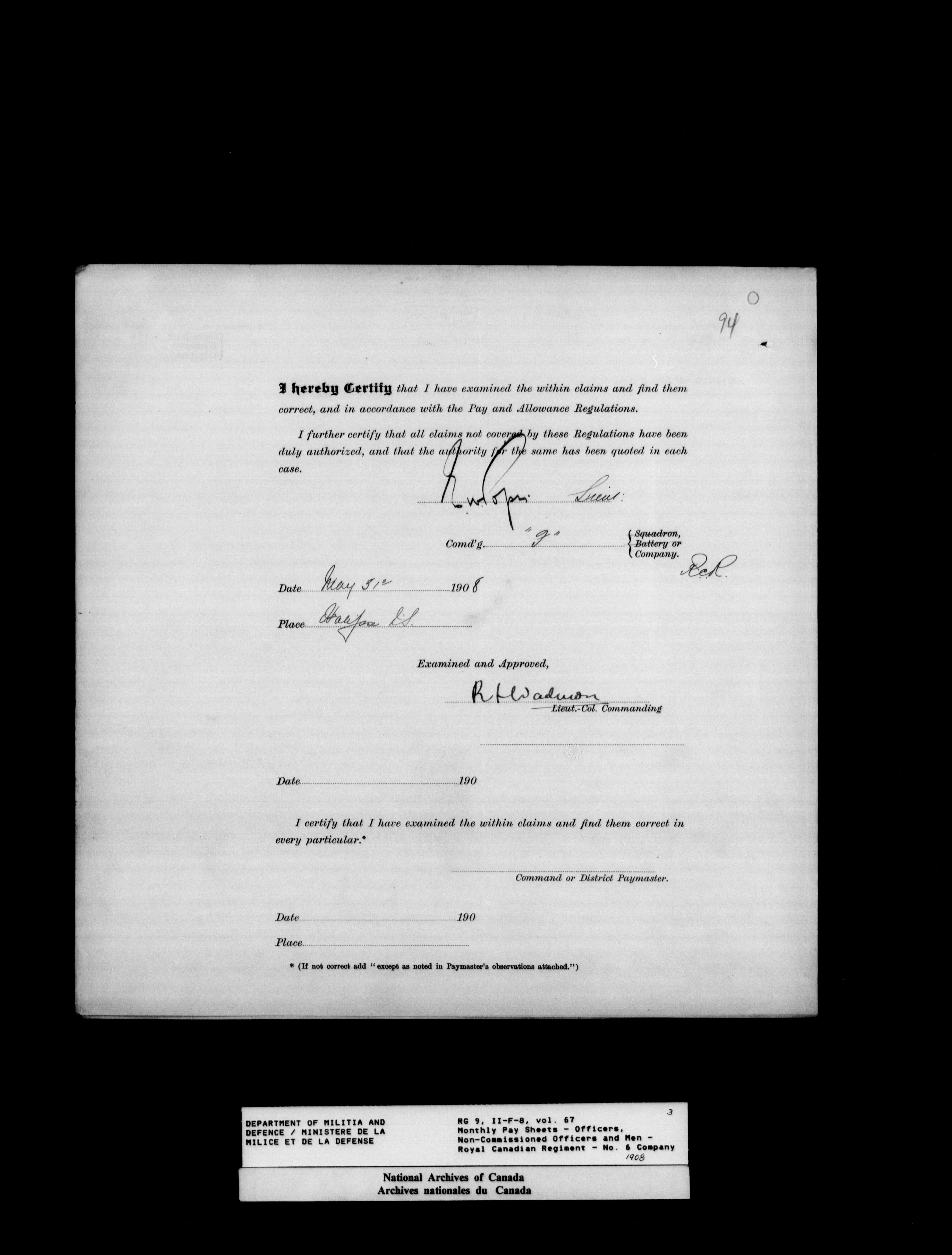 Nominal rolls and paylists for the Permanent Force (1871-1915) - 17467