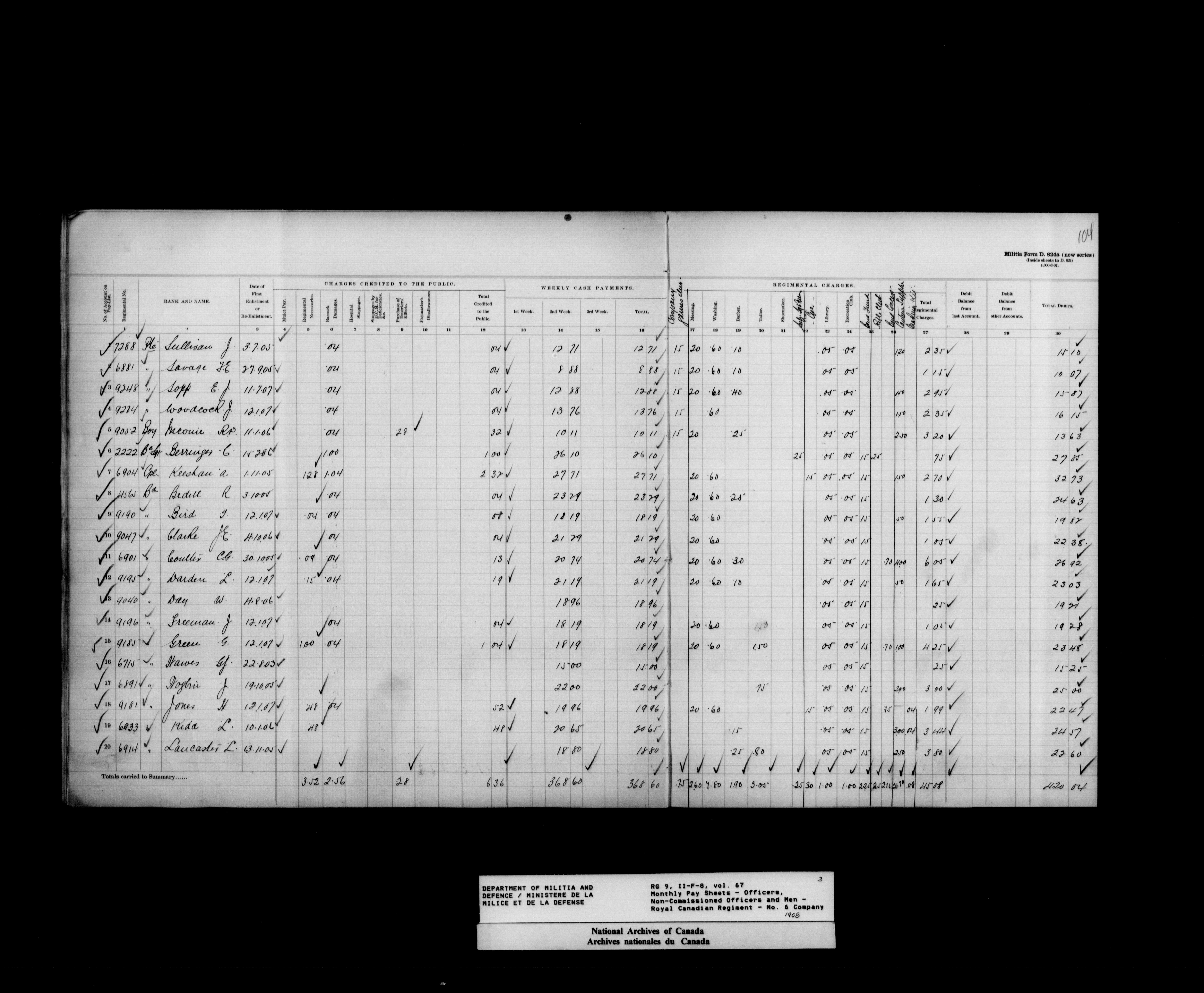 Nominal rolls and paylists for the Permanent Force (1871-1915) - 17467