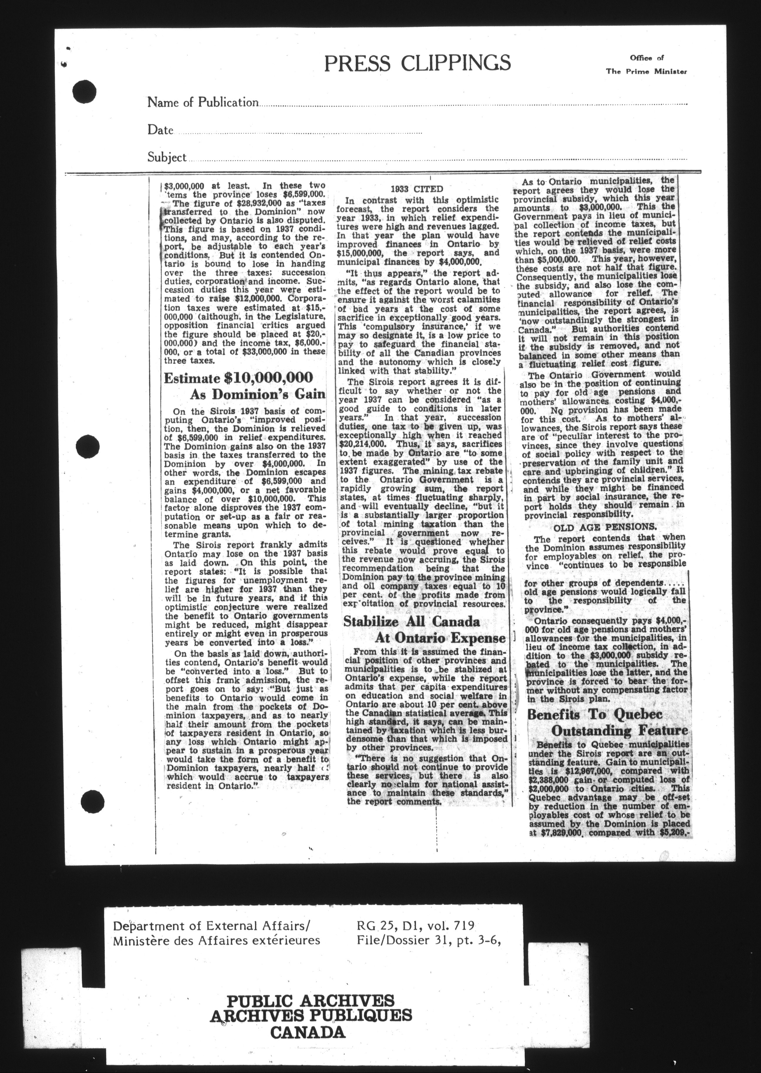 Department of External Affairs : Office of the Under-Secretary of State for External Affairs - 1747