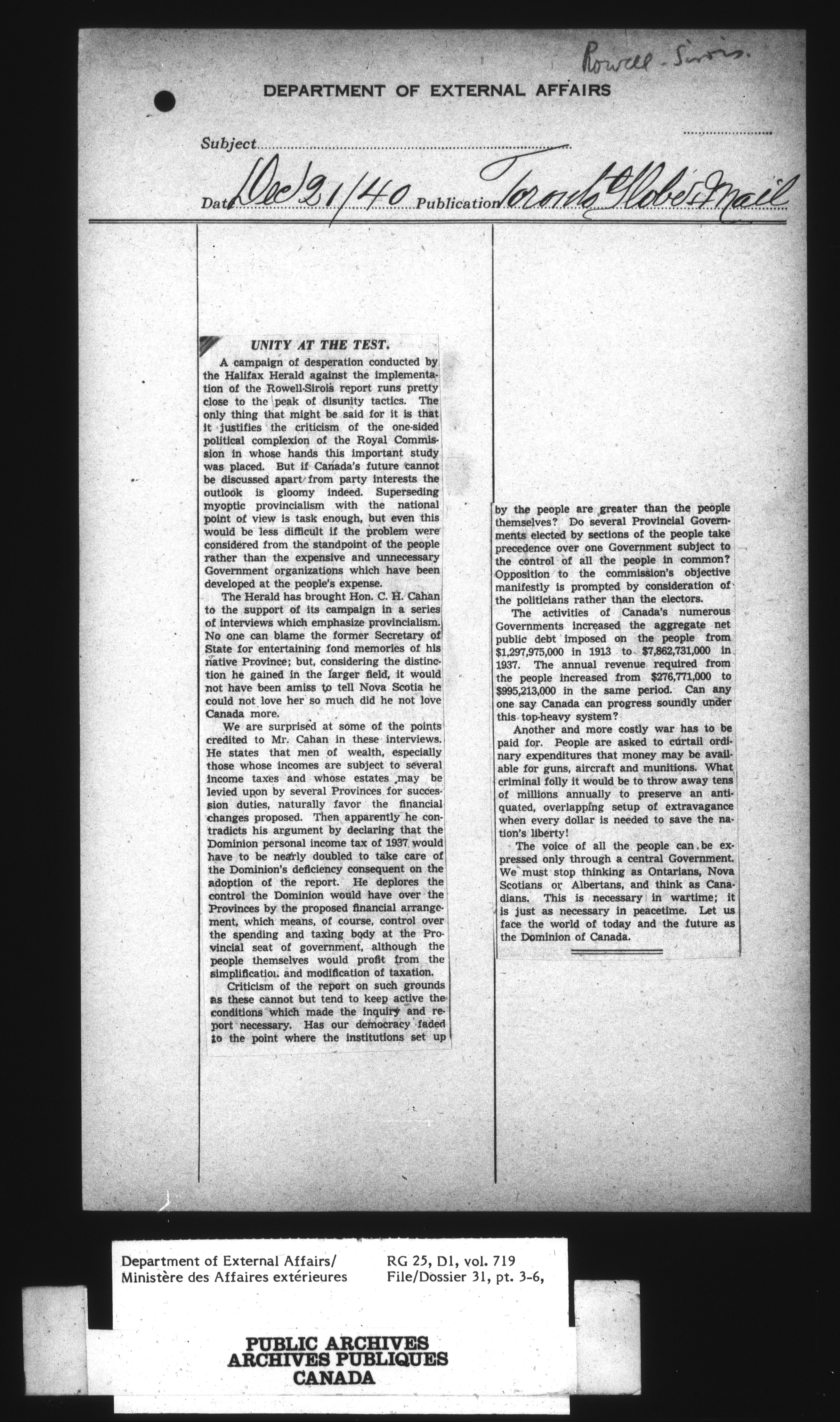 Department of External Affairs : Office of the Under-Secretary of State for External Affairs - 1747