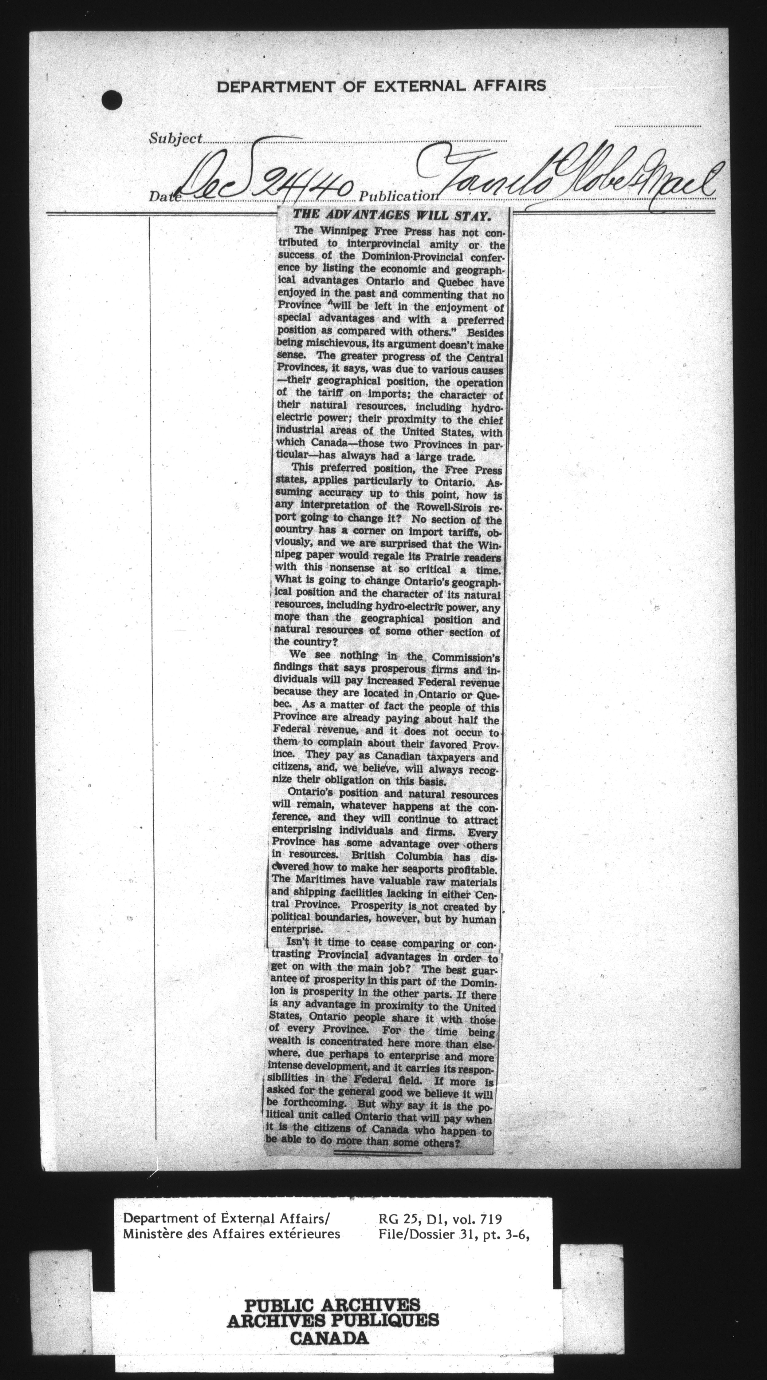 Department of External Affairs : Office of the Under-Secretary of State for External Affairs - 1747
