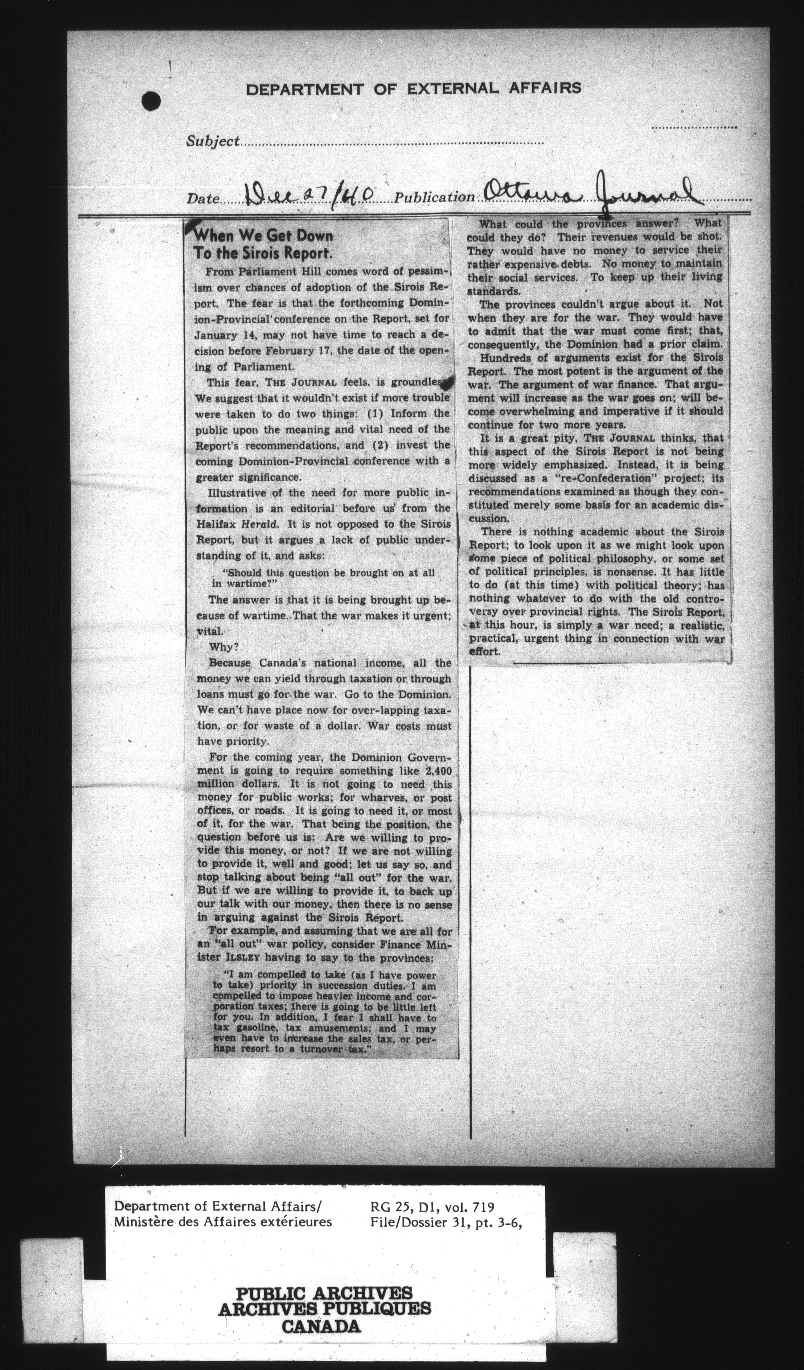 Department of External Affairs : Office of the Under-Secretary of State for External Affairs - 1747