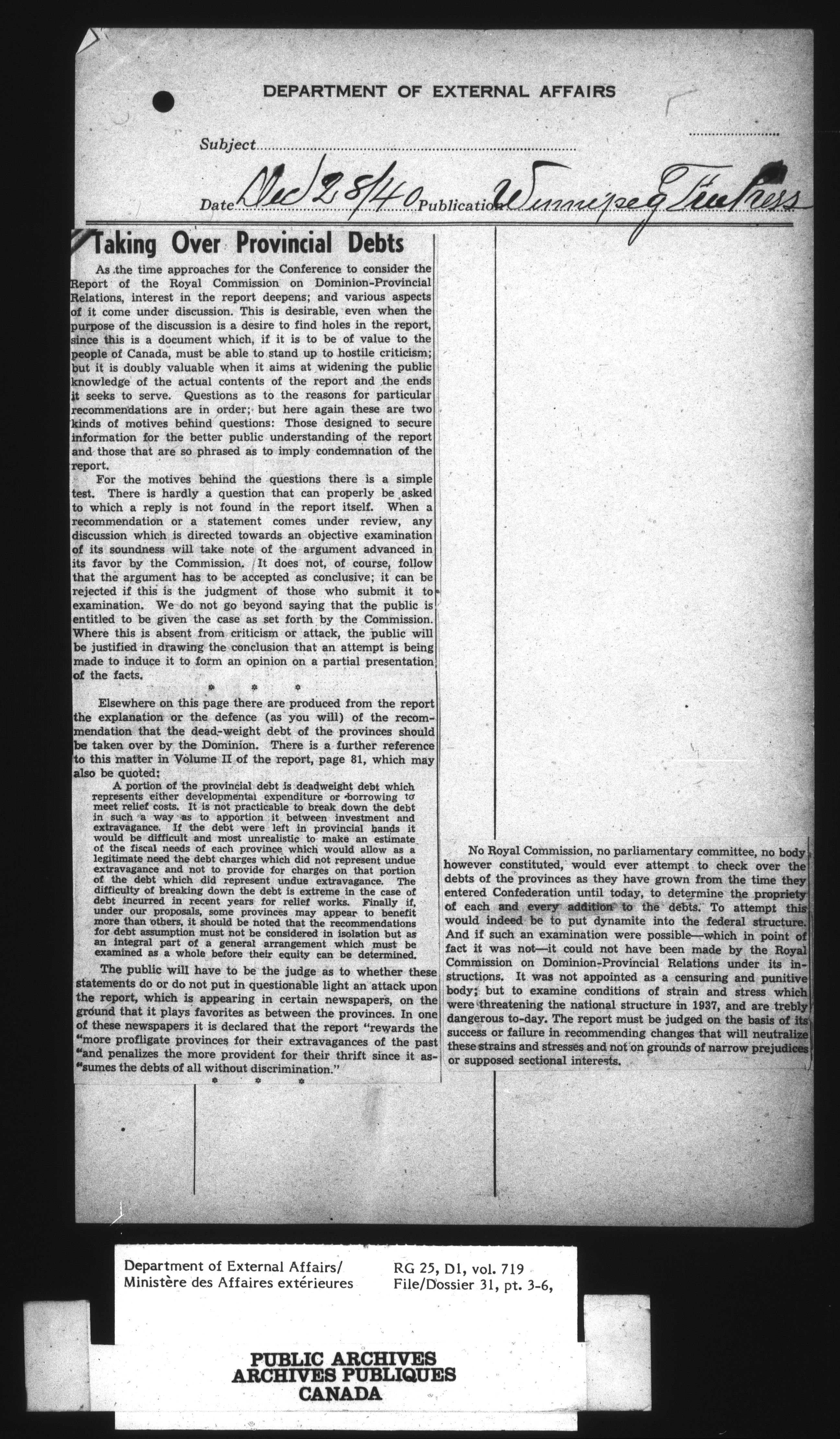 Department of External Affairs : Office of the Under-Secretary of State for External Affairs - 1747