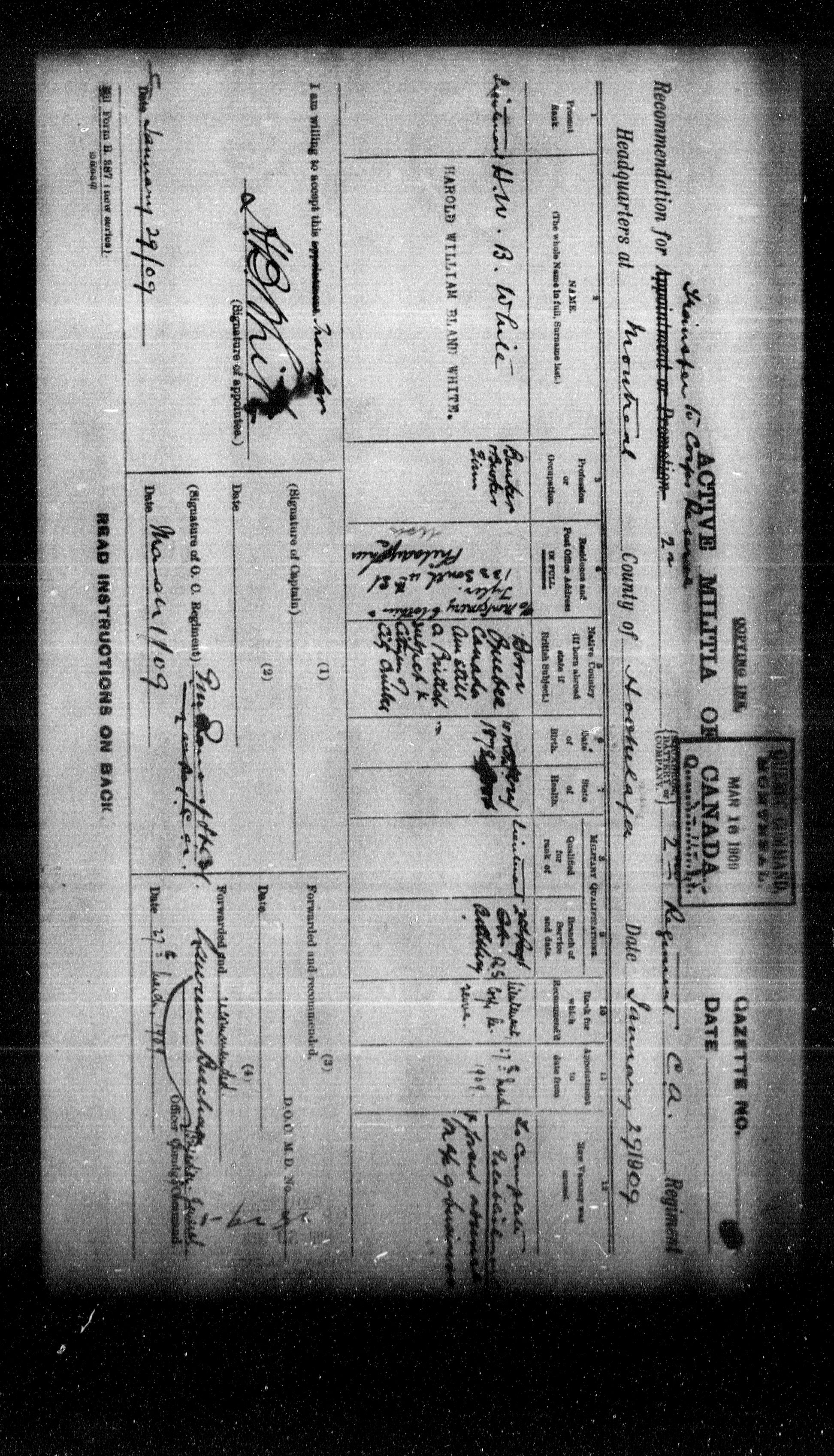 LOST Side two ASK for or CHECKMilitia and Defence personnel files [1870-1938] - 17523