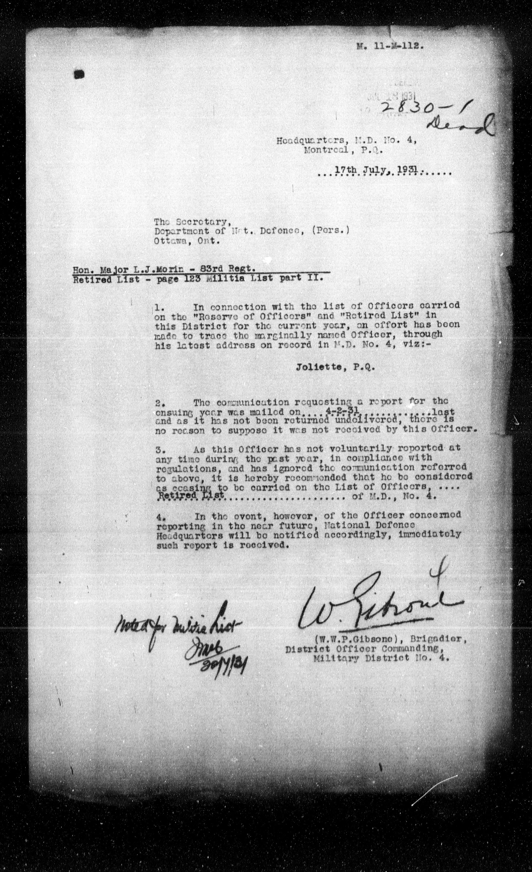 LOST Side two ASK for or CHECKMilitia and Defence personnel files [1870-1938] - 17523