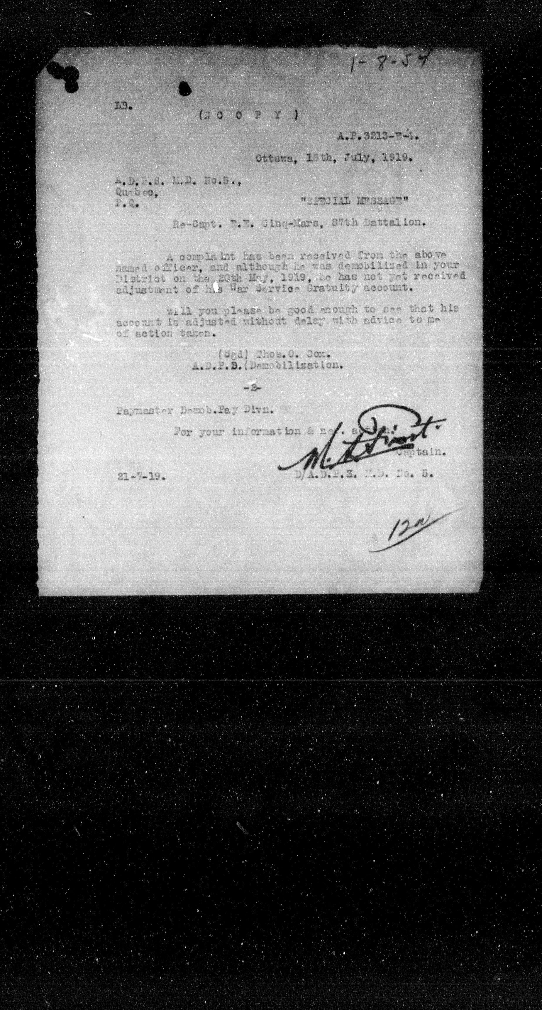 Militia and Defence personnel files [1870-1938] - 17524