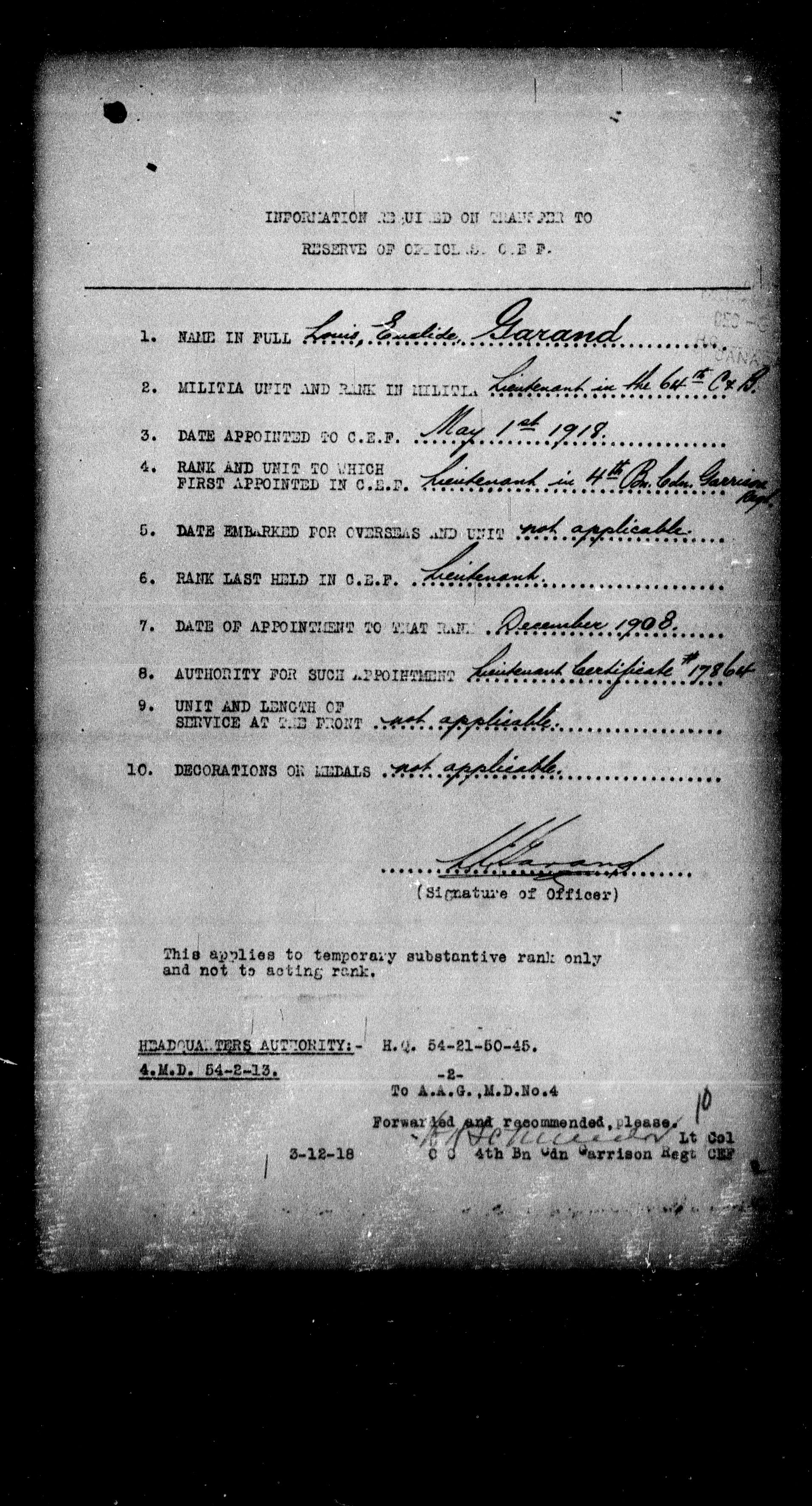 Militia and Defence personnel files [1870-1938] - 17535