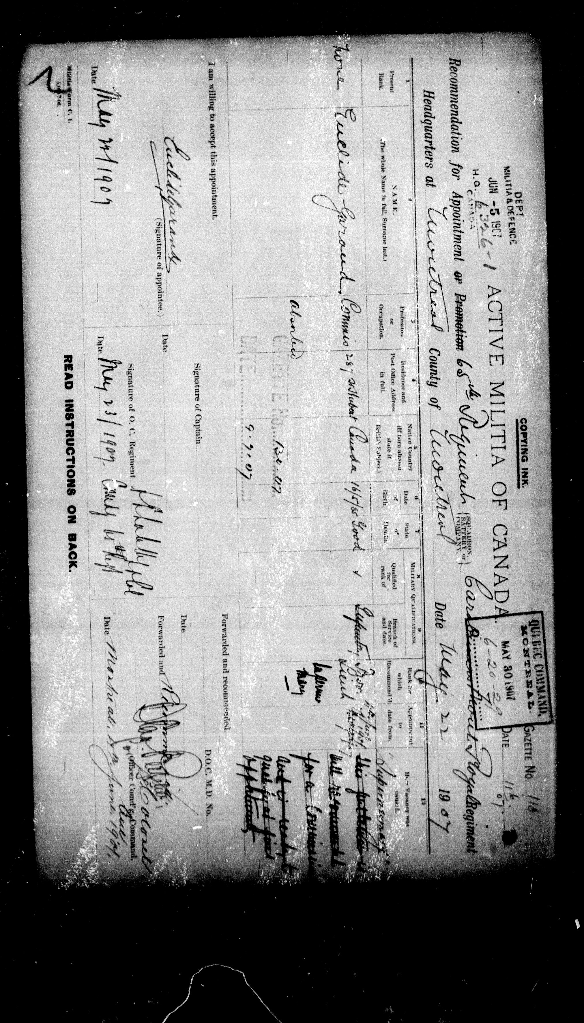 Militia and Defence personnel files [1870-1938] - 17535