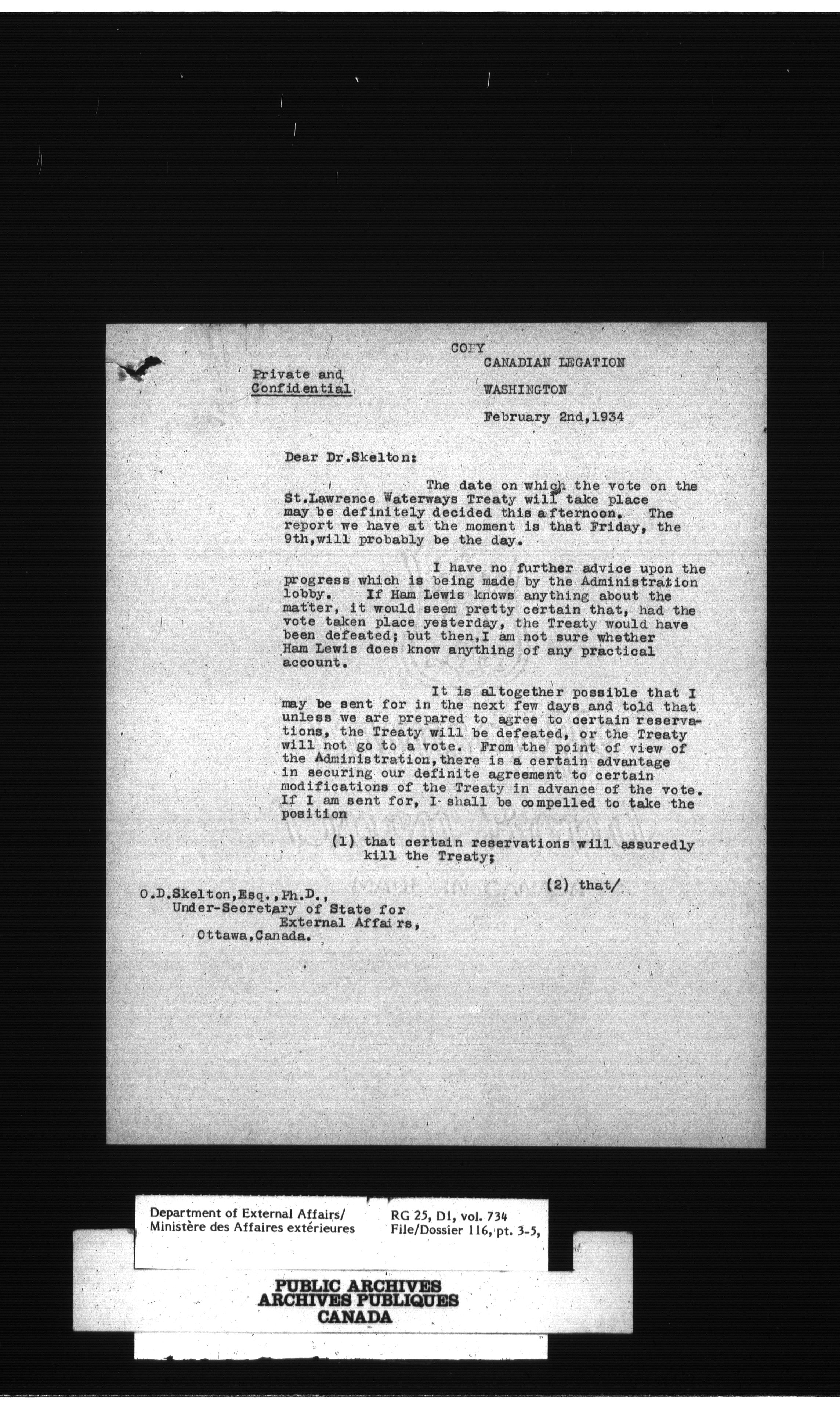 Department of External Affairs : Office of the Under-Secretary of State for External Affairs : T-1754