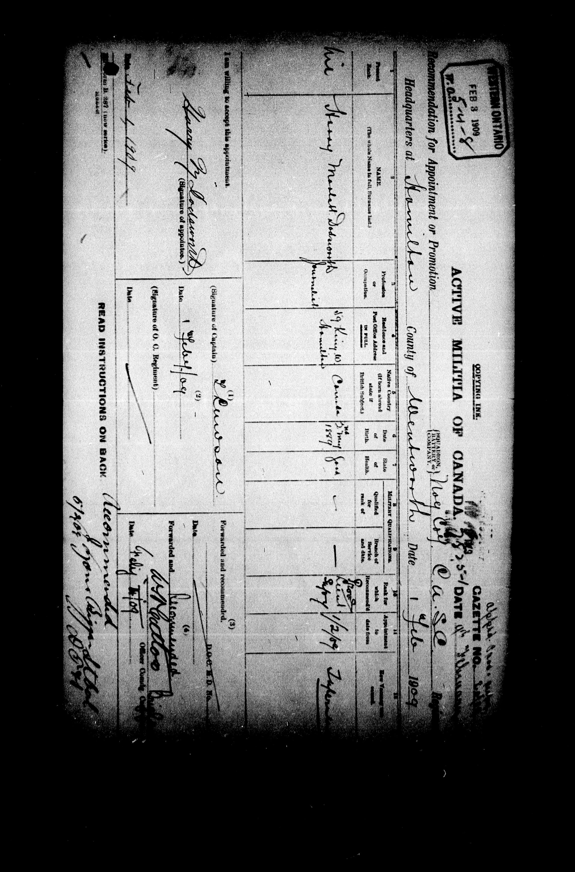 Militia and Defence personnel files [1870-1938] - 17549