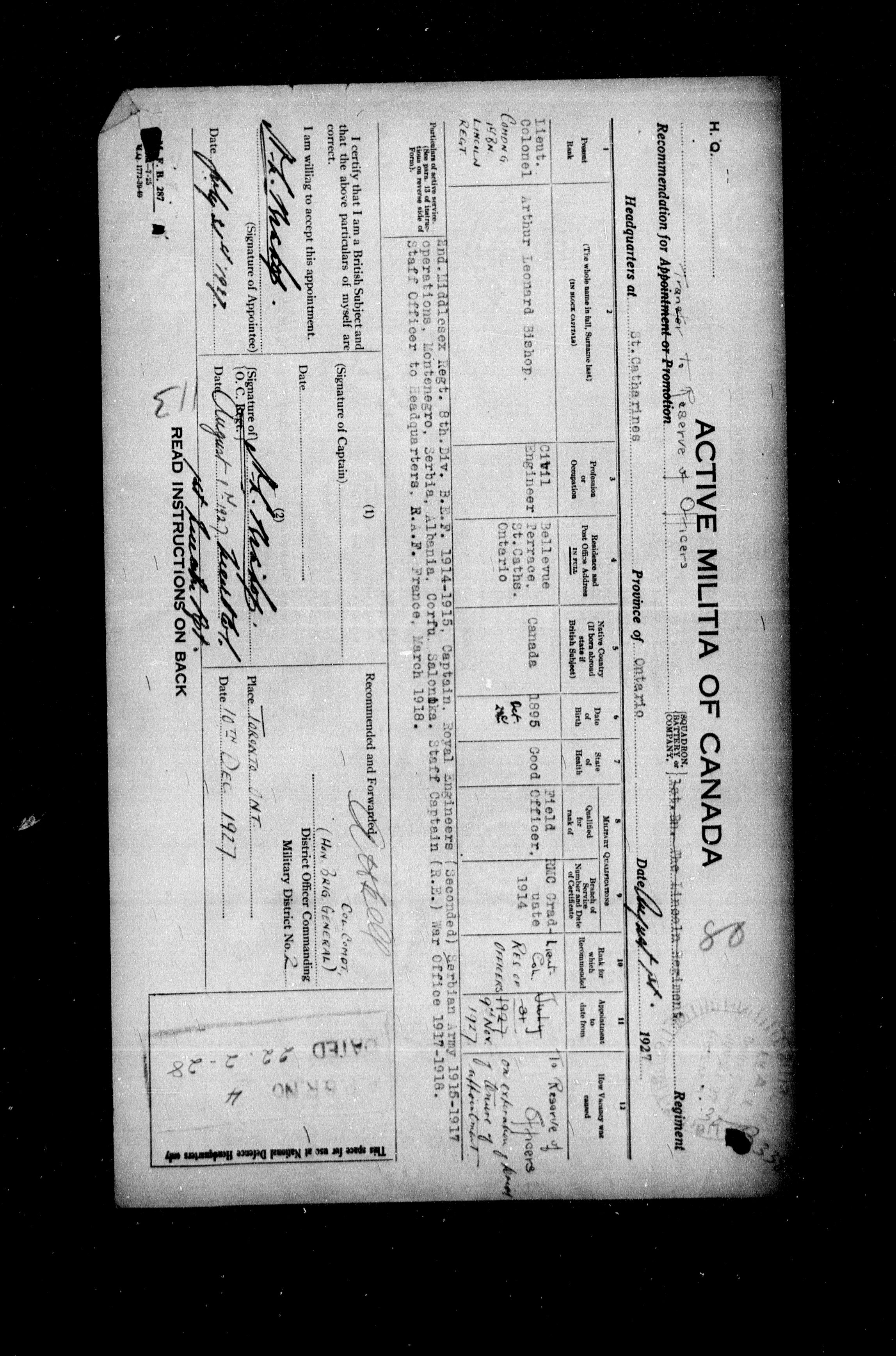 Militia and Defence personnel files, (1870-1948) - 17591