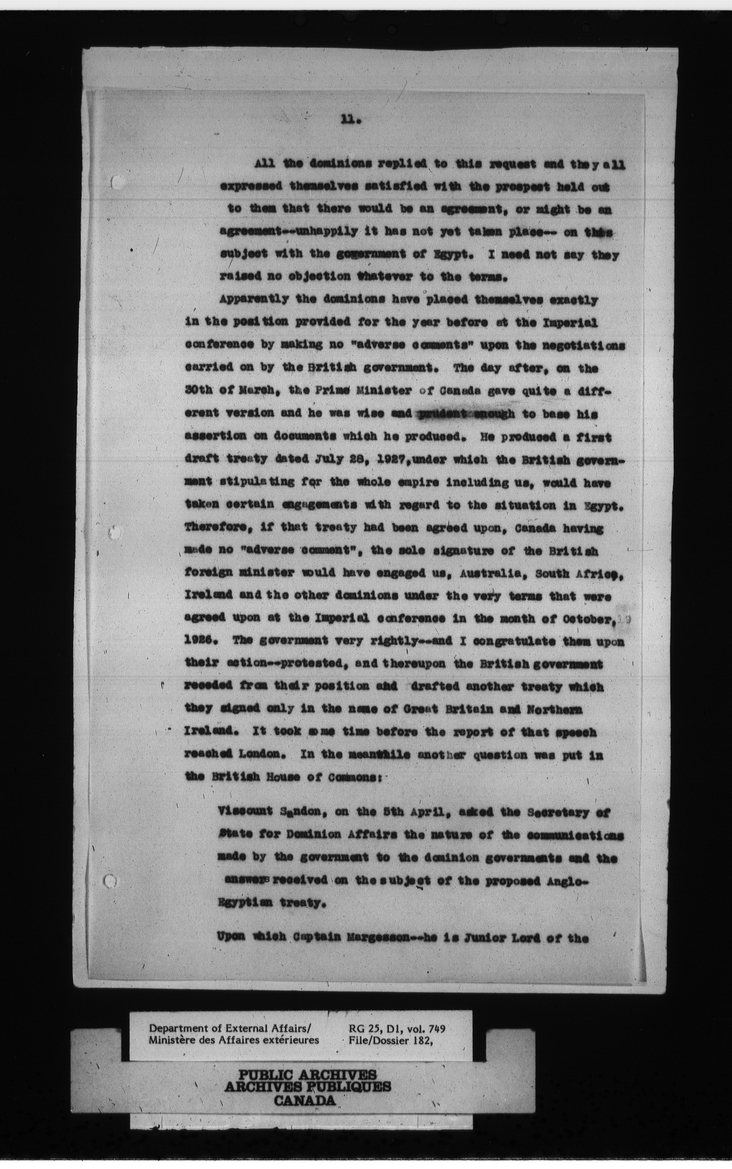 Department of External Affairs : Office of the Under-Secretary of State for External Affairs - 1761