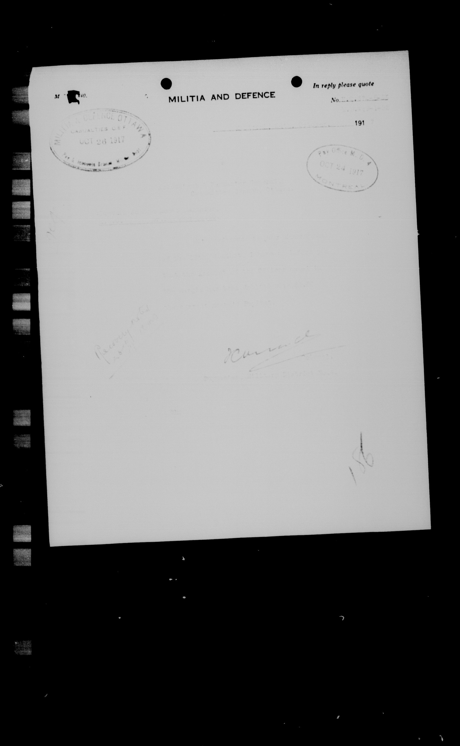 Militia and Defence personnel files, (1870-1948) - 17613