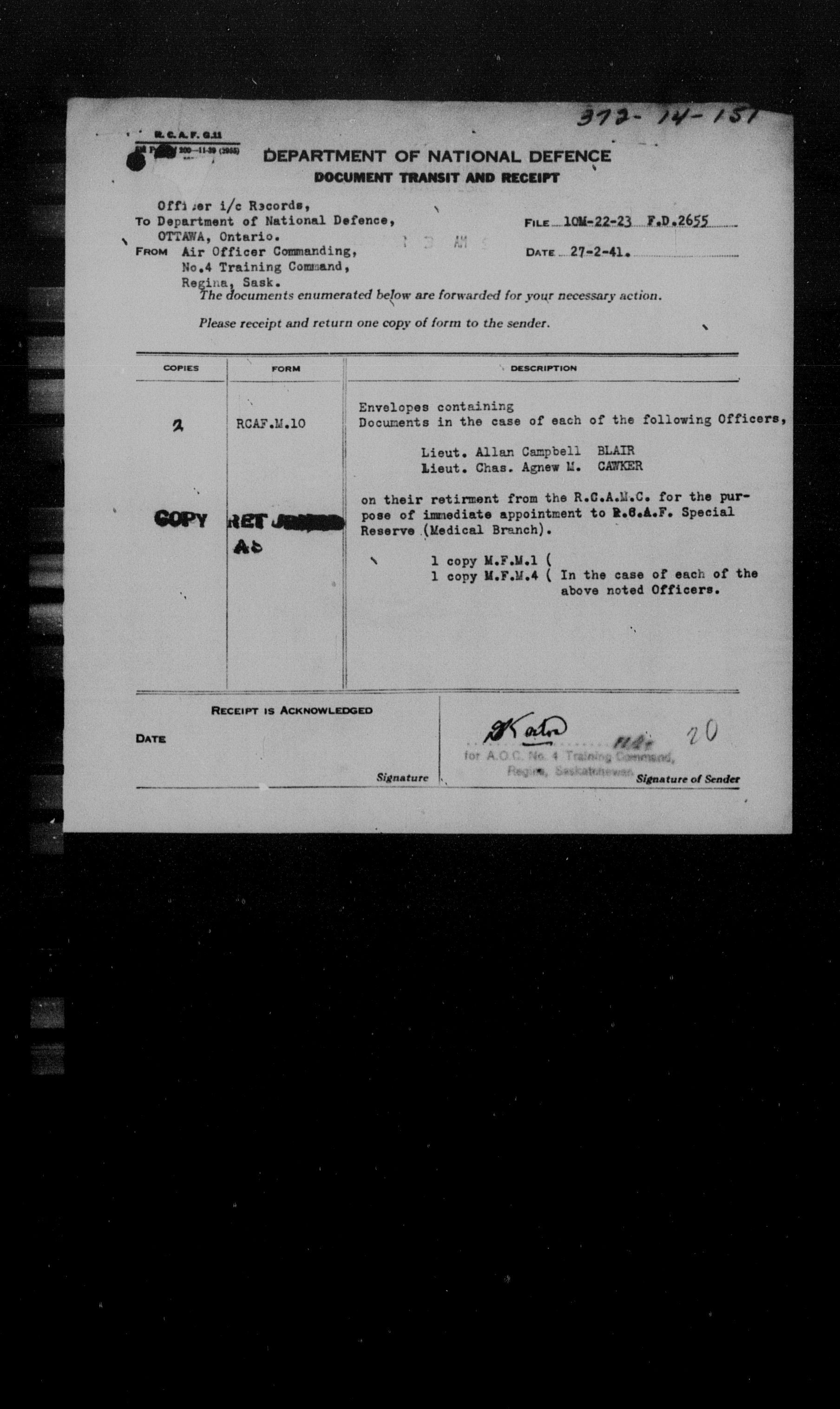 Militia and Defence personnel files : T-17616