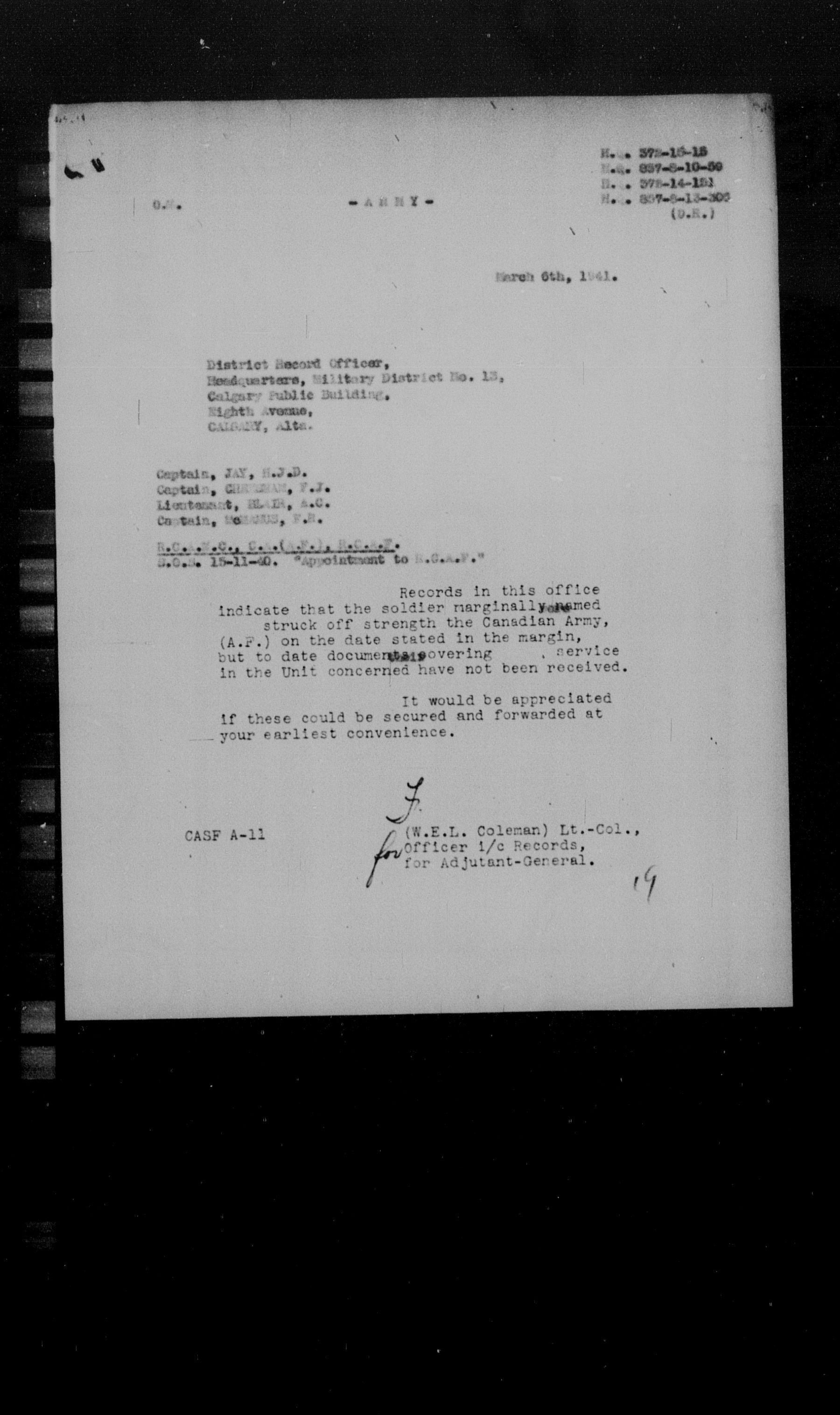 Militia and Defence personnel files [1870-1938] - 17616