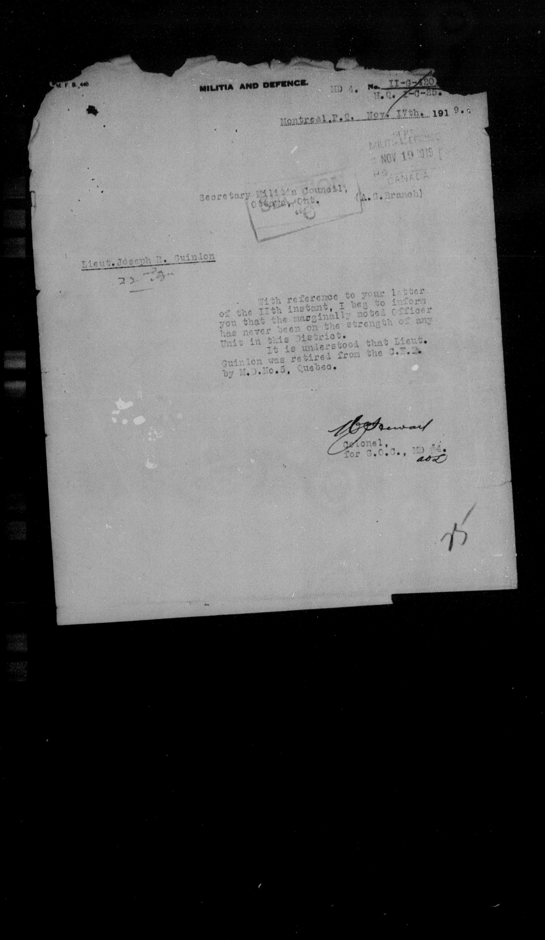 Militia and Defence personnel files [1870-1938] - 17622