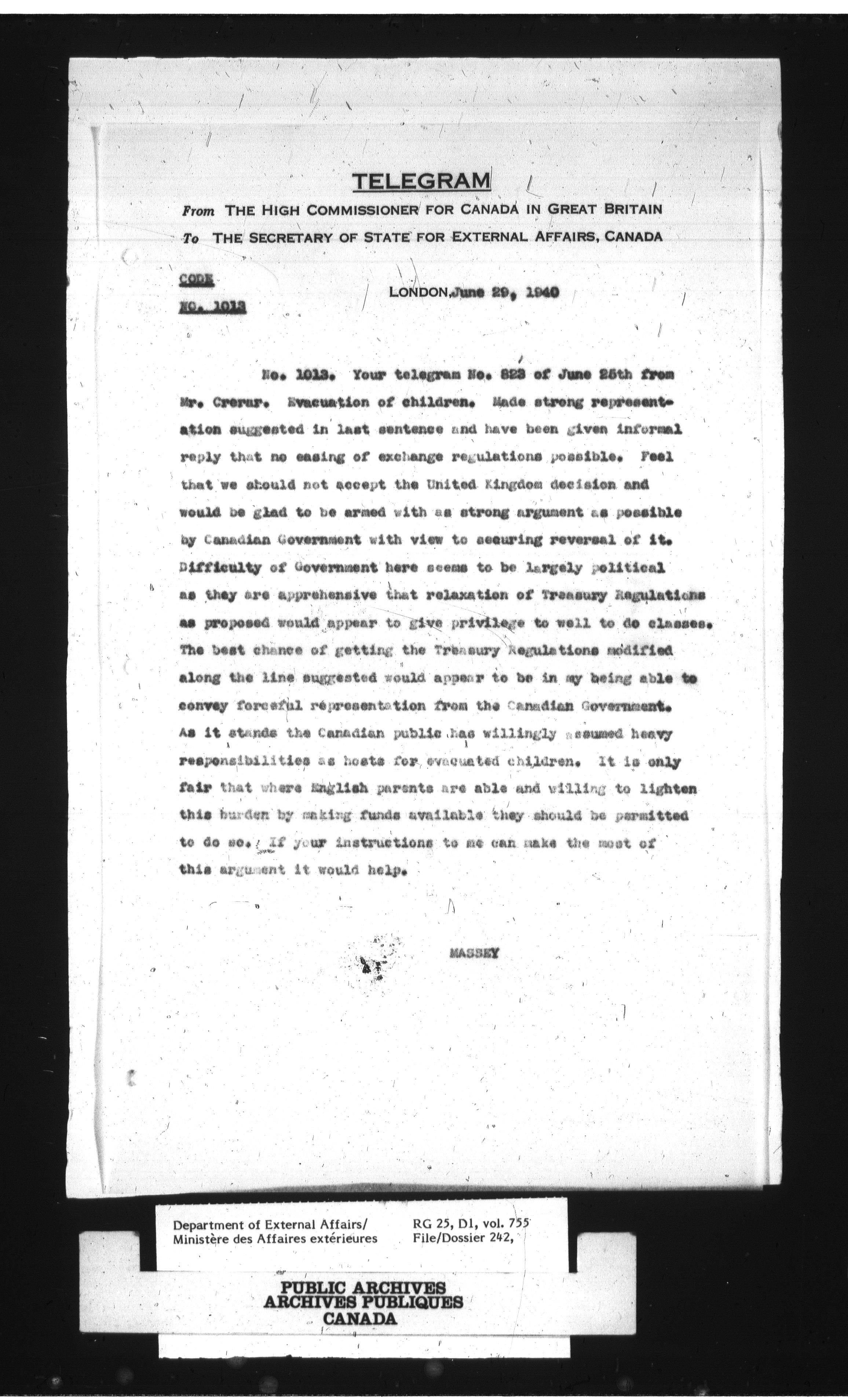 Department of External Affairs : Office of the Under-Secretary of State for External Affairs : T-1763