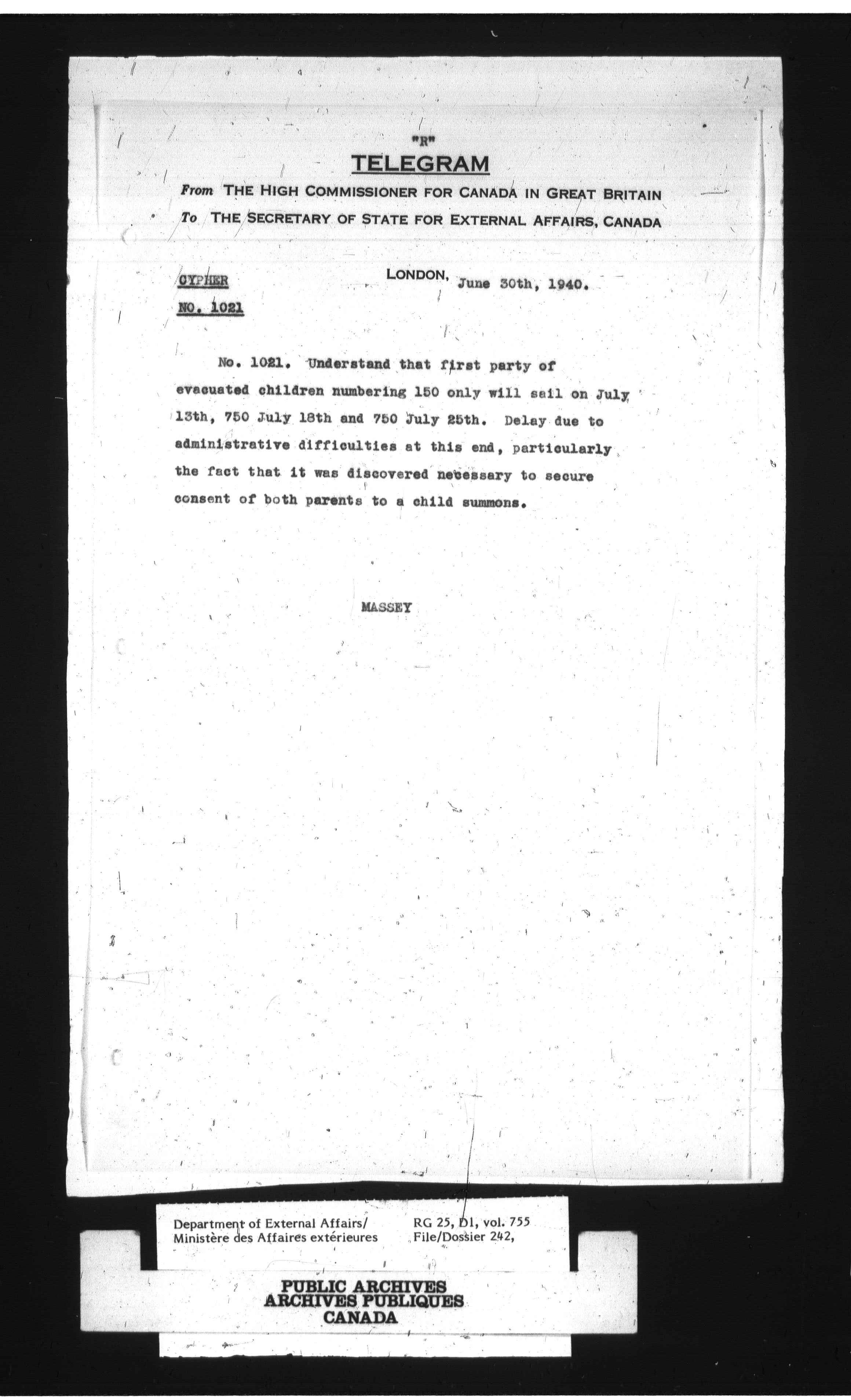 Department of External Affairs : Office of the Under-Secretary of State for External Affairs : T-1763