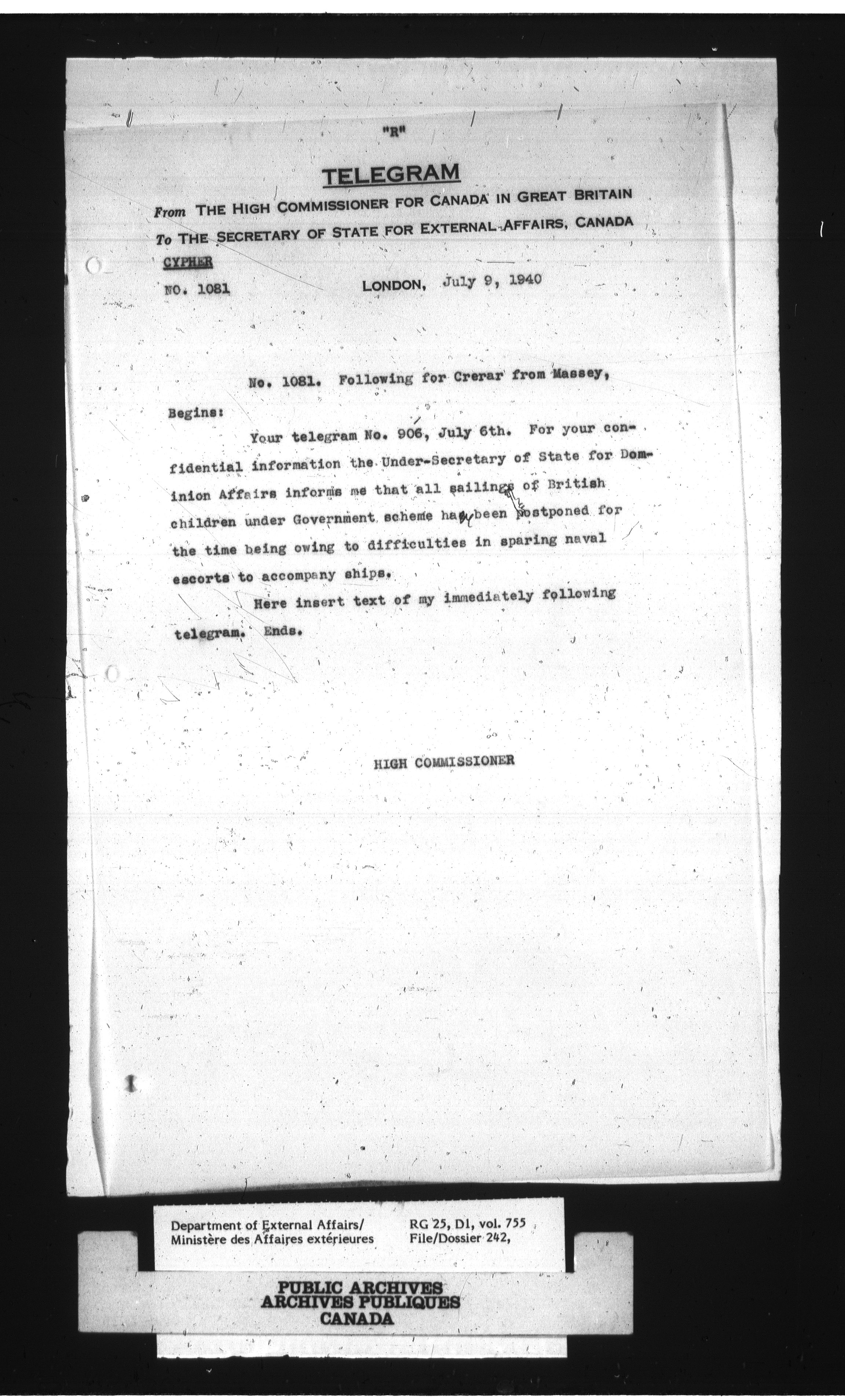 Department of External Affairs : Office of the Under-Secretary of State for External Affairs : T-1763